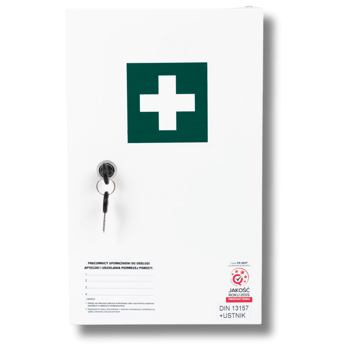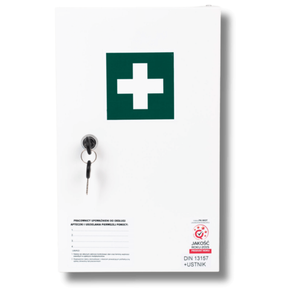 - Apteczka stalowa ścienna pierwszej pomocy „40” DIN 13157 jest przeznaczona do zakładów pracy, biur, szkół lub instytucji. Jej uniwersalność sprawia, że jest idealnym rozwiązaniem dla każdego miejsca, gdzie wymagane jest posiadanie apteczki pierwszej pomocy.