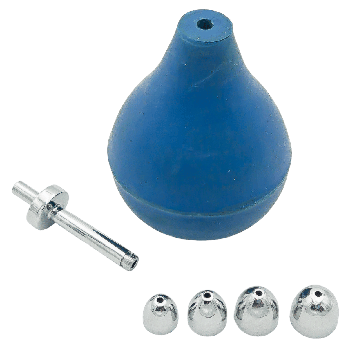 - Zawartość zestawu: gruszka z elastycznej gumy, łącznik Luer, cztery końcówki, oliwki