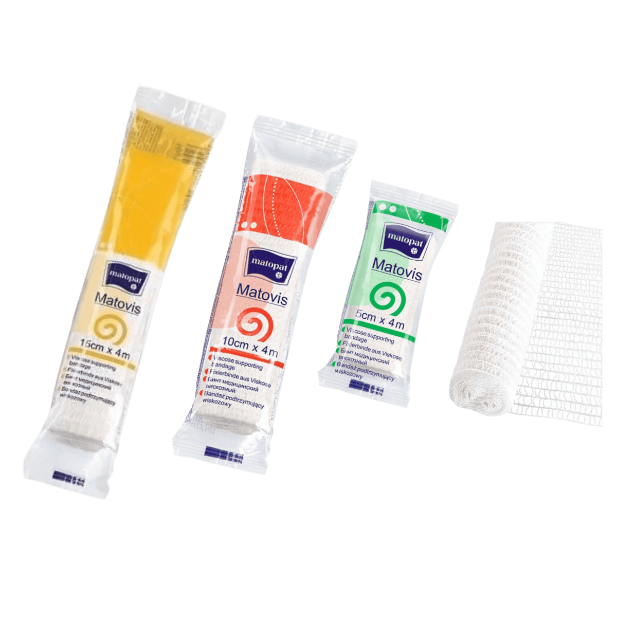 to popularny bandaż podtrzymujący wykonany z wiskozy, dziany i nieelastyczny. Stosowany szczególnie do stabilizacji i mocowania opatrunków, szyn, przewodów medycznych i łusek ortopedycznych. Matovis jest świetnie tolerowany przez skórę. Duże oczka pozwalają dobrze przepuszczać powietrze i parę wodną. Dodatkowy komfort użytkowania zapewniają niestrzępiące się brzegi.