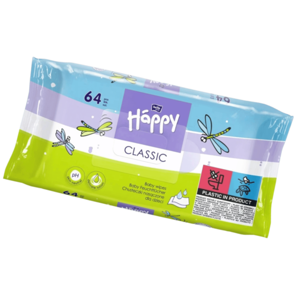 Chusteczki mokre Happy to niezastąpiony produkt do codziennej pielęgnacji delikatnej skóry dziecka. Miękka włóknina oraz starannie dobrane składniki zapewniają skuteczne oczyszczanie, jednocześnie nawilżając i chroniąc skórę przed wysuszeniem. Dzięki neutralnemu pH chusteczki pomagają zachować naturalną barierę ochronną skóry, pozostawiając ją miękką i odświeżoną.