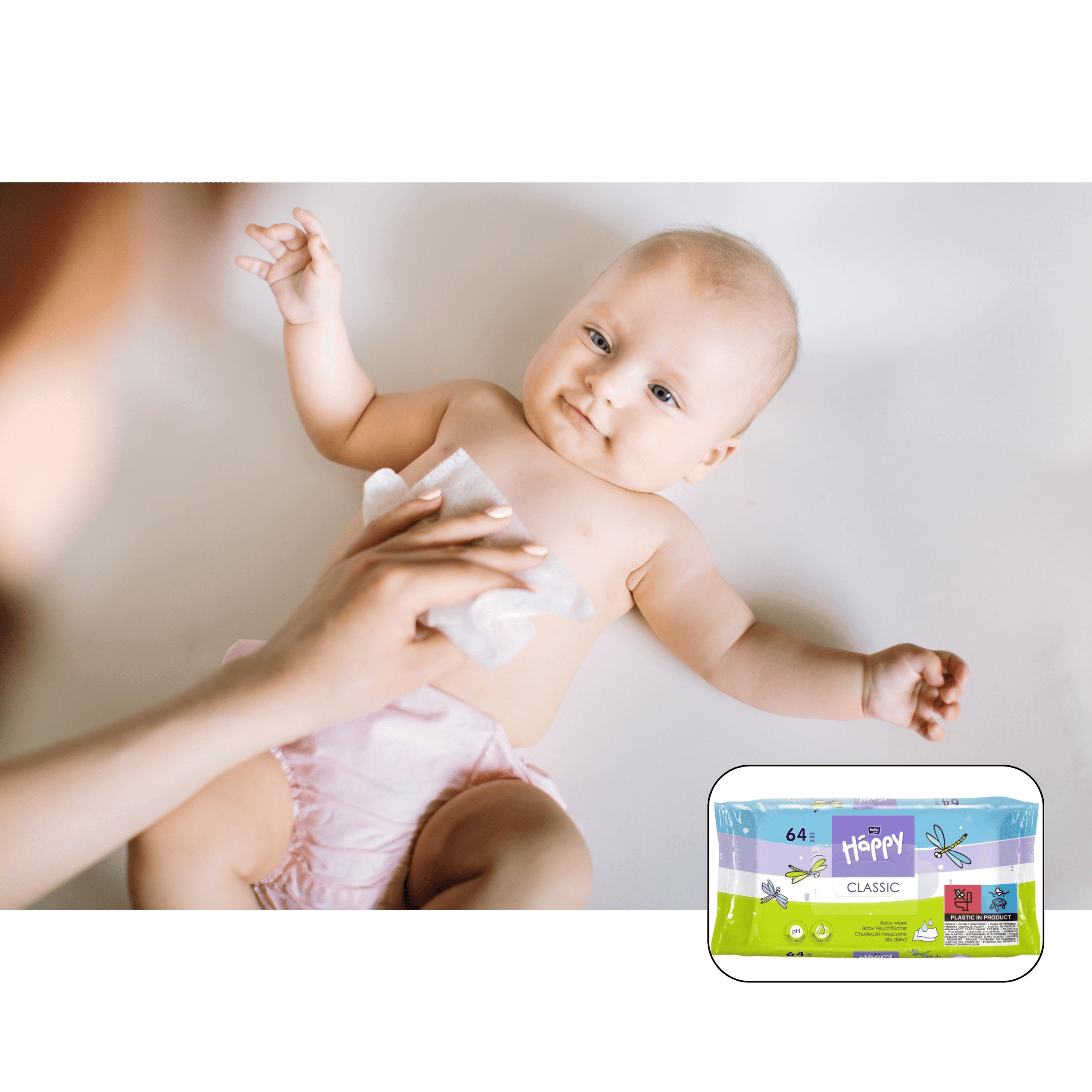 Chusteczki nawilżające Happy z alantoiną i witaminą E doskonale sprawdzają się w każdej sytuacji – podczas przewijania, po posiłku czy w podróży. Zapewniają natychmiastową świeżość i ochronę skóry.
