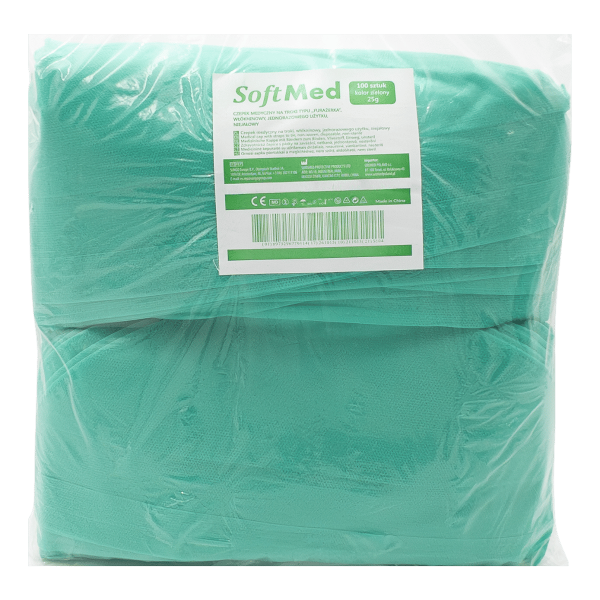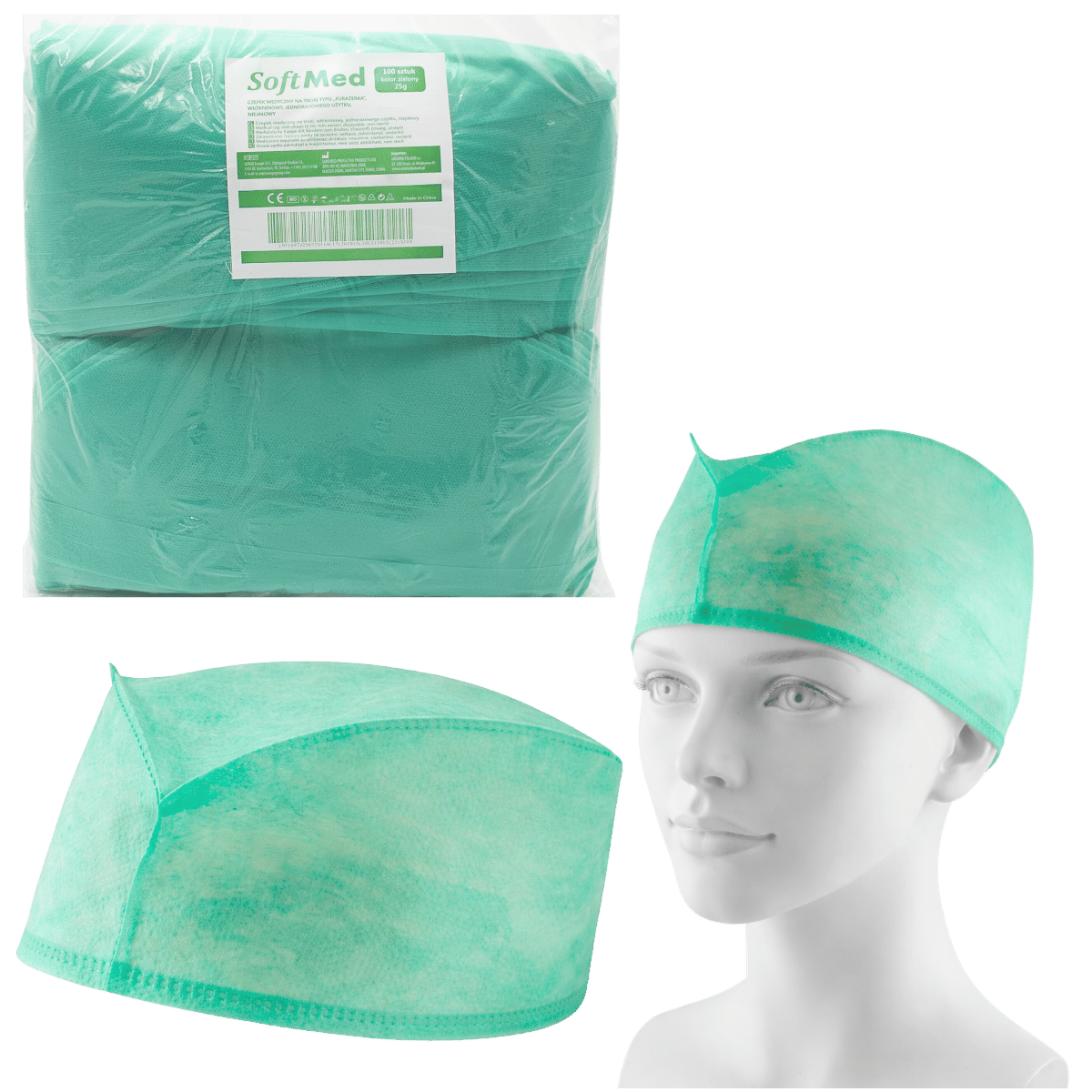100 × czepek medyczny włókninowy SoftMed typu furażerkazielony