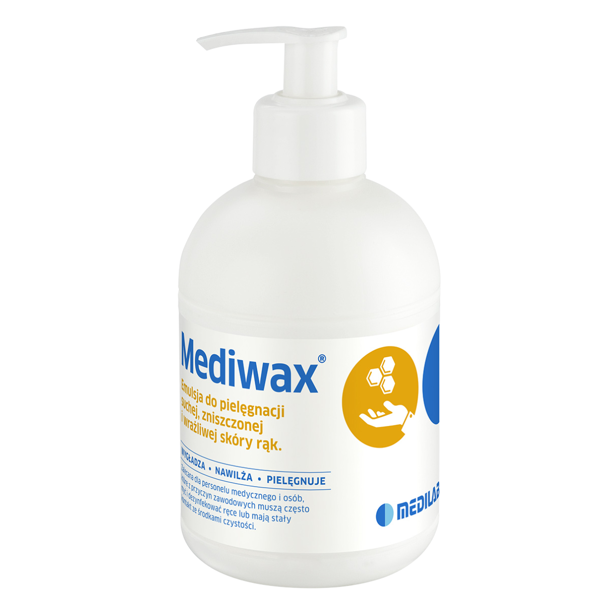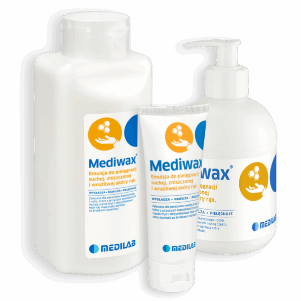 Mediwax Medilab to specjalistyczna emulsja pielęgnacyjna stworzona z myślą o osobach, które często myją i dezynfekują ręce – personelu medycznym, kosmetycznym, gastronomicznym oraz pracownikach przemysłu i usług. Emulsja skutecznie nawilża, regeneruje i wygładza suchą, szorstką i wrażliwą skórę dłoni.
