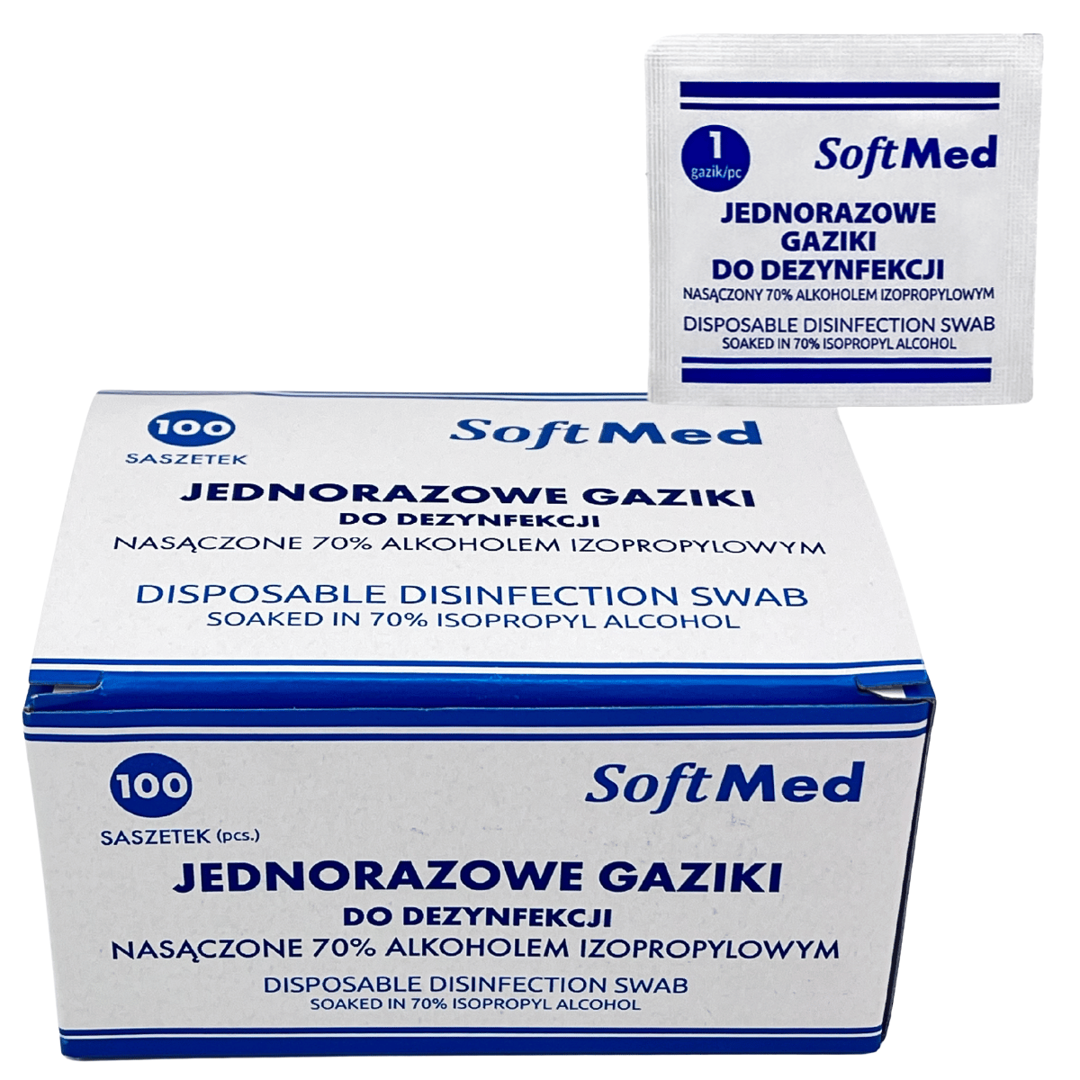 Gaziki do dezynfekcji z alkoholem 100szt. Softmed – Gwarancja higieny i bezpieczeństwa