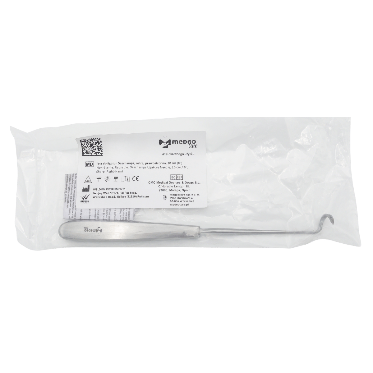 Igła do ligatur ostra Deschamps 20cm Medeoline