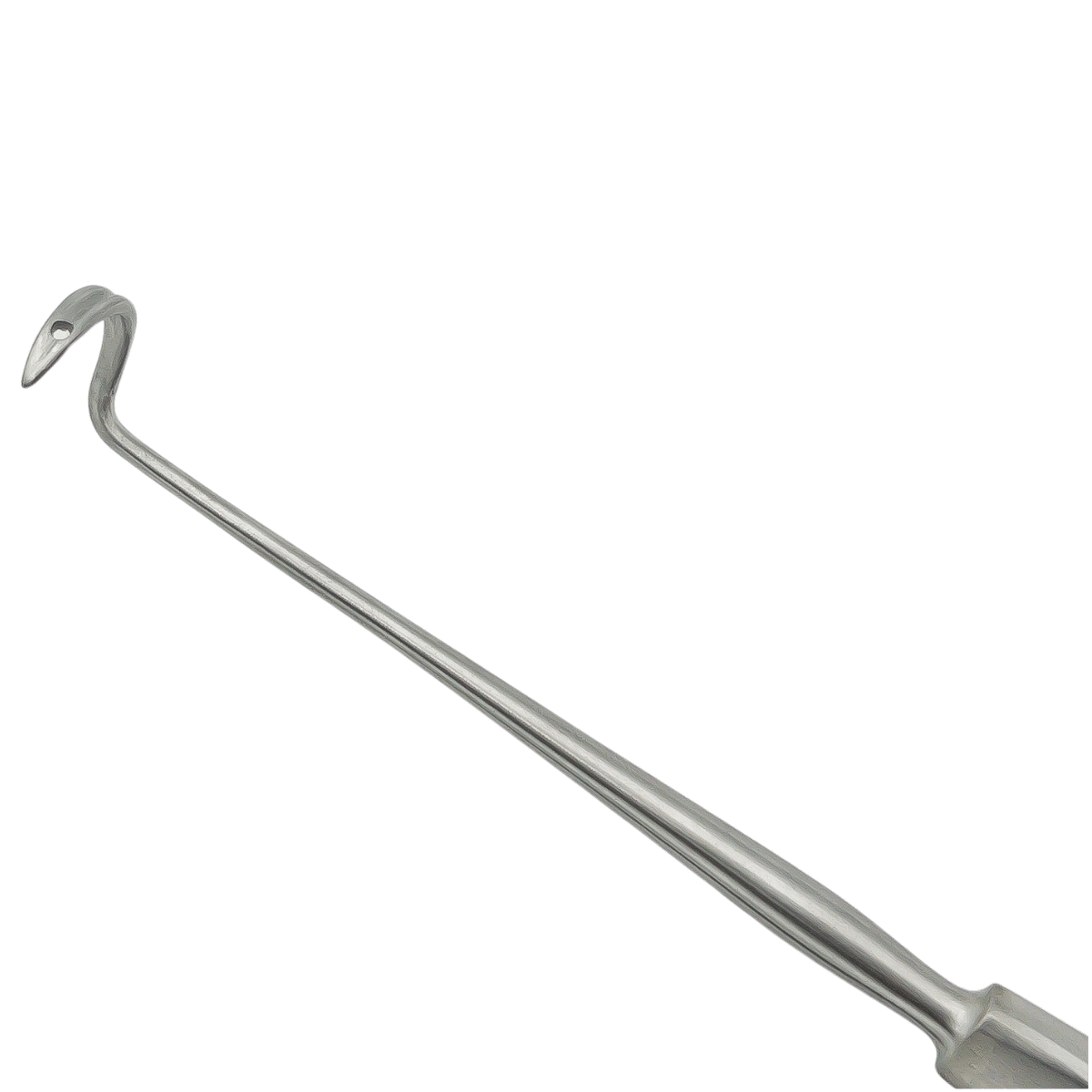 Igła do ligatur typu Deschamps służy do przewlekania nici chirurgicznych w trudno dostępnych miejscach oraz ich podwiązywania. Ostra końcówka ułatwia kontrolowane przeprowadzenie materiału w polu zabiegowym.