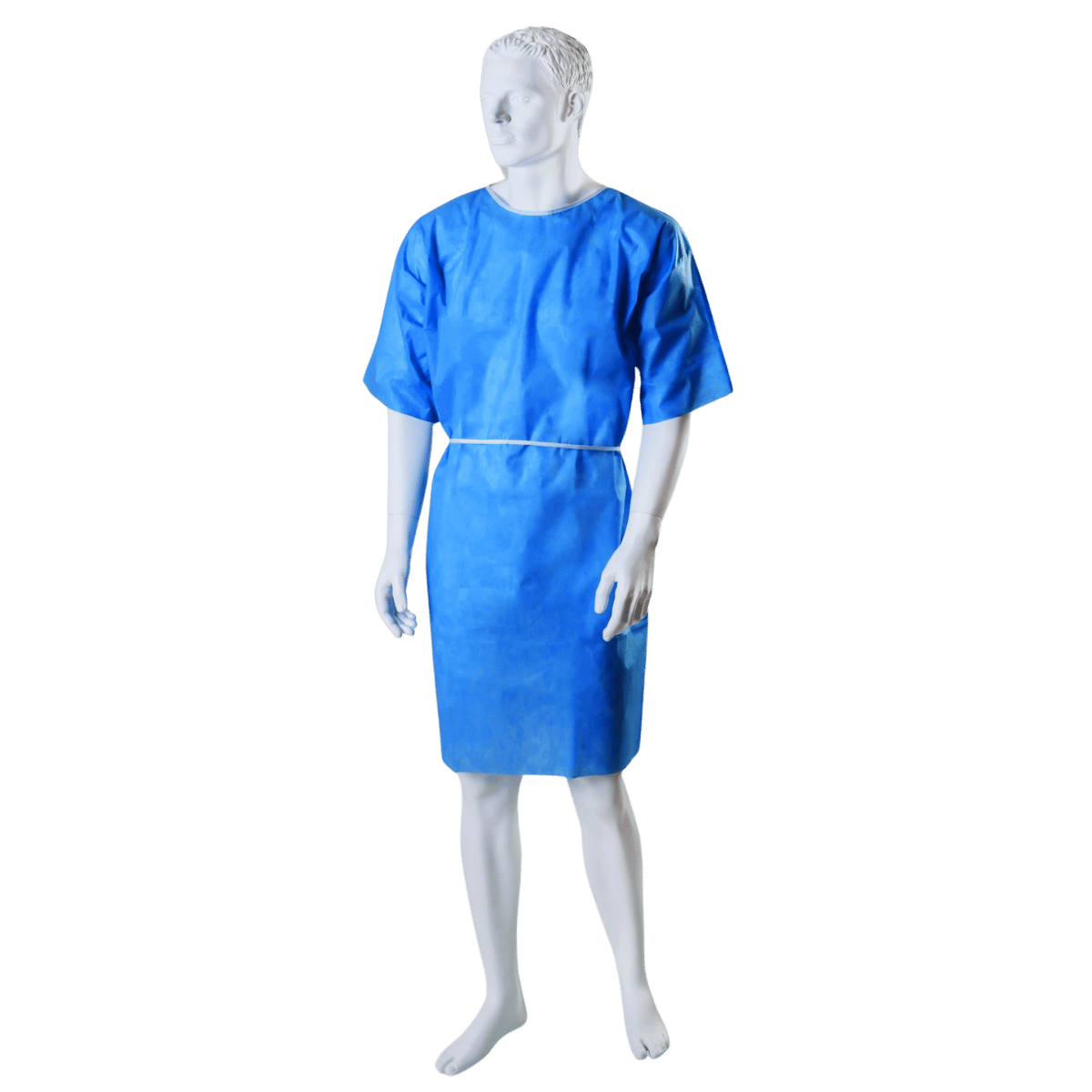 - Przemyślana konstrukcja z krótkimi rękawami oraz wiązaniami na szyi i talii, umożliwiająca łatwe zakładanie i zdejmowanie pacjentom leżącym