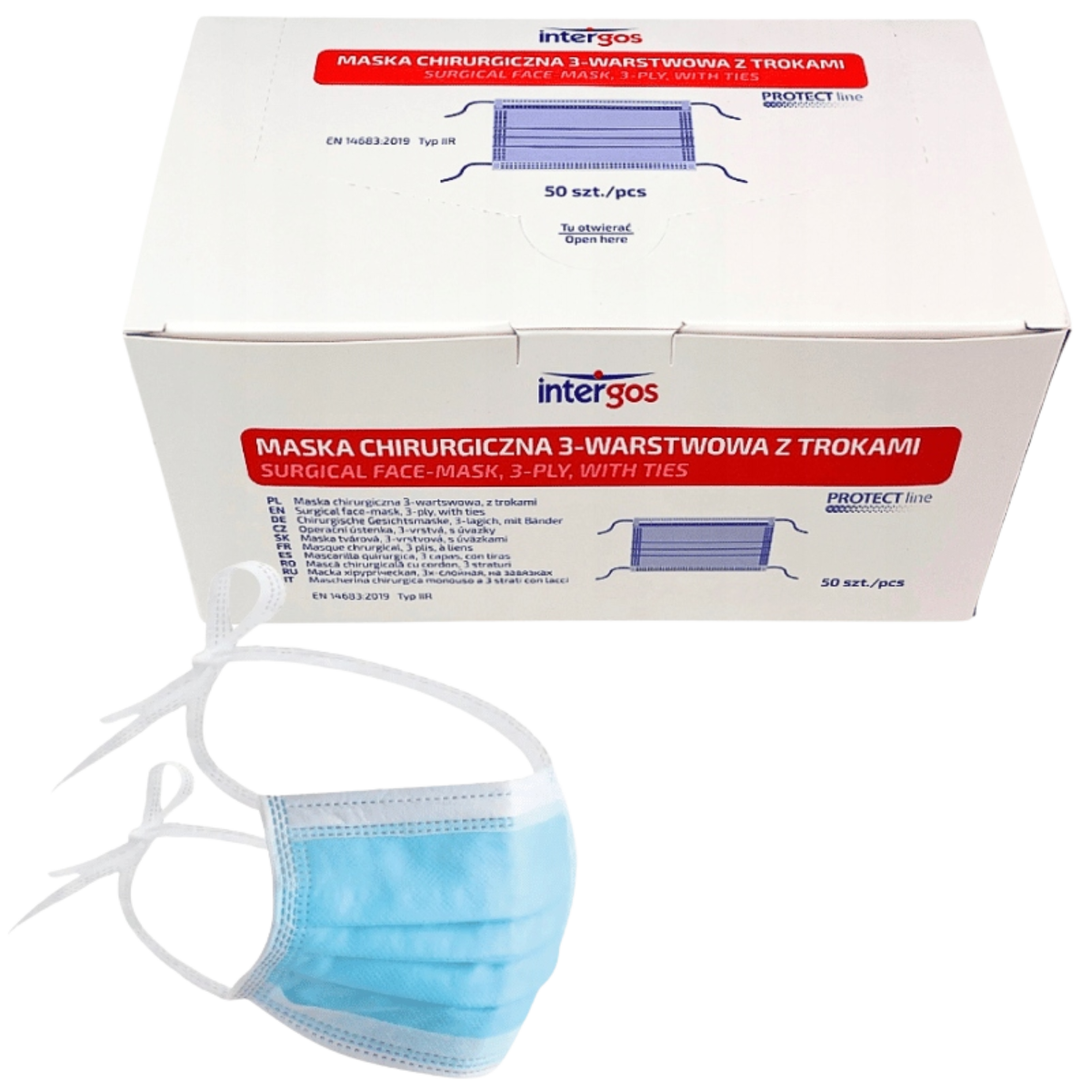 Maseczki na troki, chirurgiczne, 50 sztuk – Intergos
