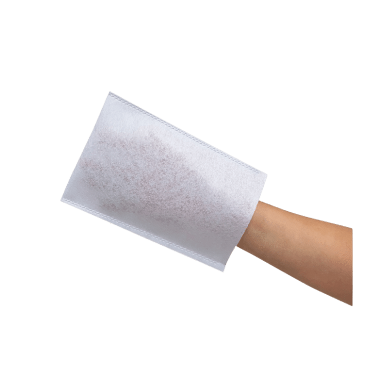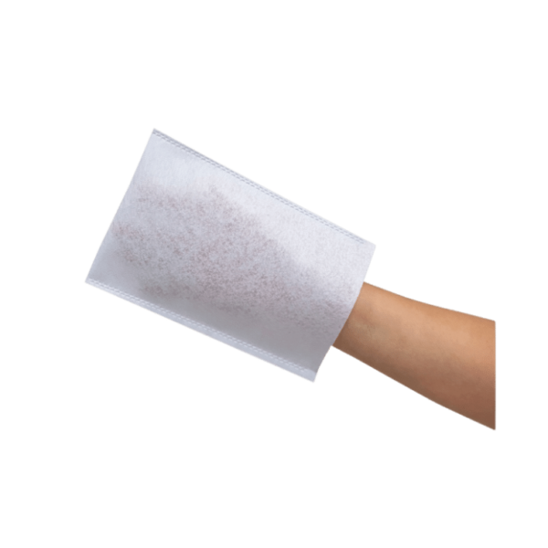 Myjka higieniczna w formie rękawicy umożliwiającej założenie na dłoń.
