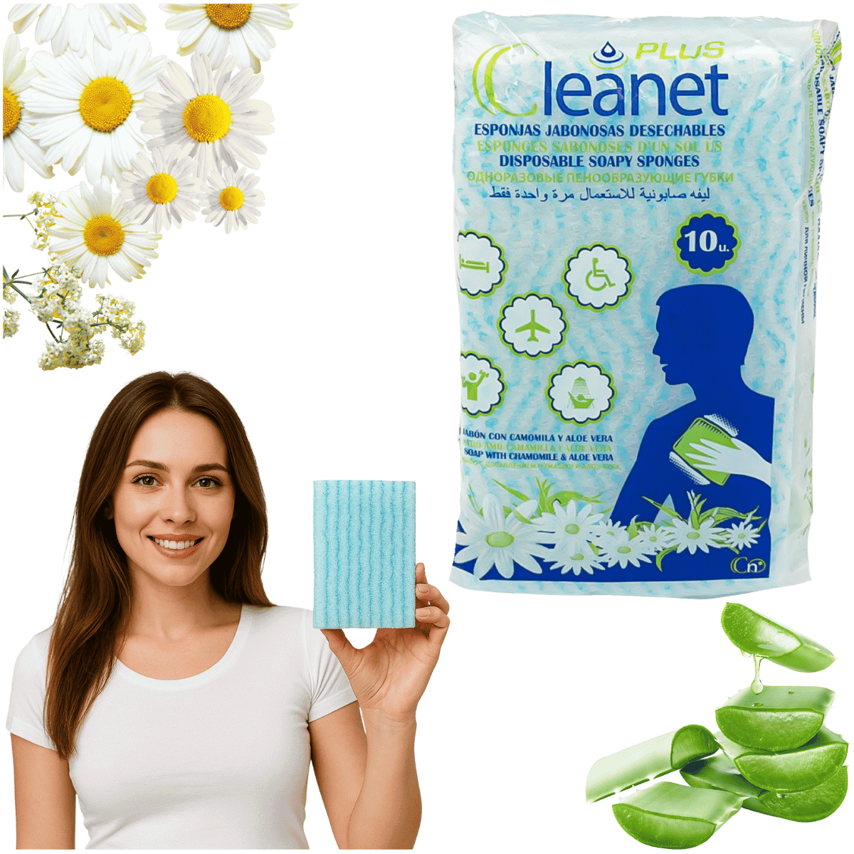 Jednorazowa myjka Cleanet PLUS nasączona środkiem myjącym z ekstraktem z aloesu i rumianku to idealne rozwiązanie do codziennej higieny osobistej – zarówno w domu, jak i w podróży.