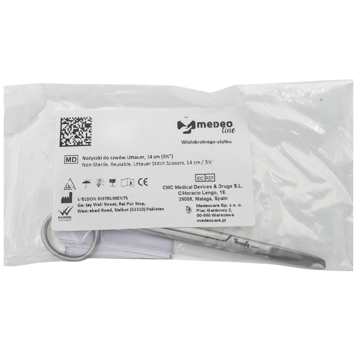 Nożyczki typu Littauer to narzędzie przeznaczone do przecinania i usuwania szwów po wygojeniu rany. Charakterystyczna konstrukcja ostrzy, z haczykiem lub półksiężycowatym wycięciem na końcu, ułatwia podważenie nici przed przecięciem, co pomaga usuwać szwy bez nadmiernego naciągania skóry i tkanek. Narzędzie marki Medeoline wykonano ze stali nierdzewnej chirurgicznej, przeznaczone jest do wielokrotnego użytku i sterylizacji.