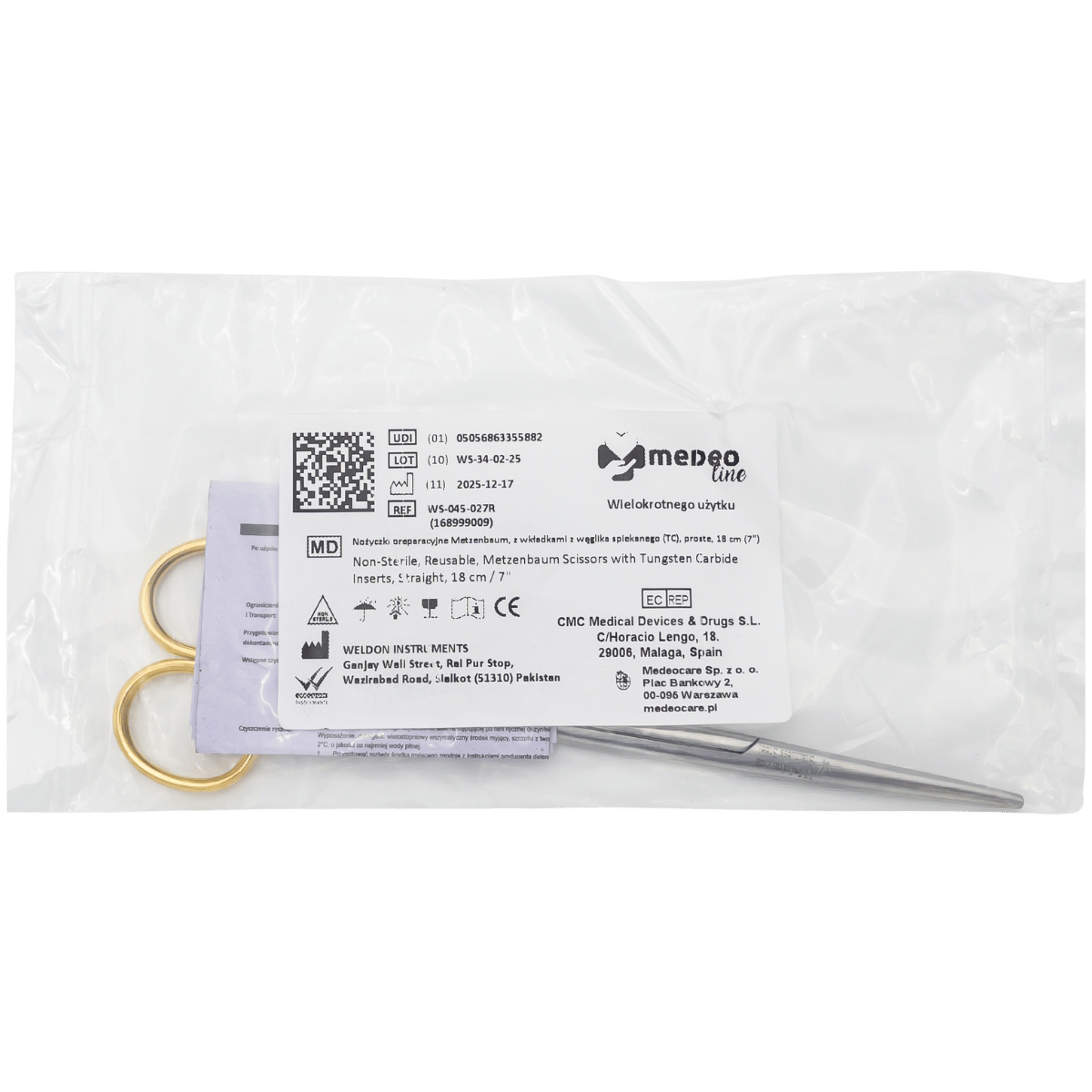 Nożyczki preparacyjne Metzenbaum 18cm z wkładkami z węglika spiekanego TC Medeoline