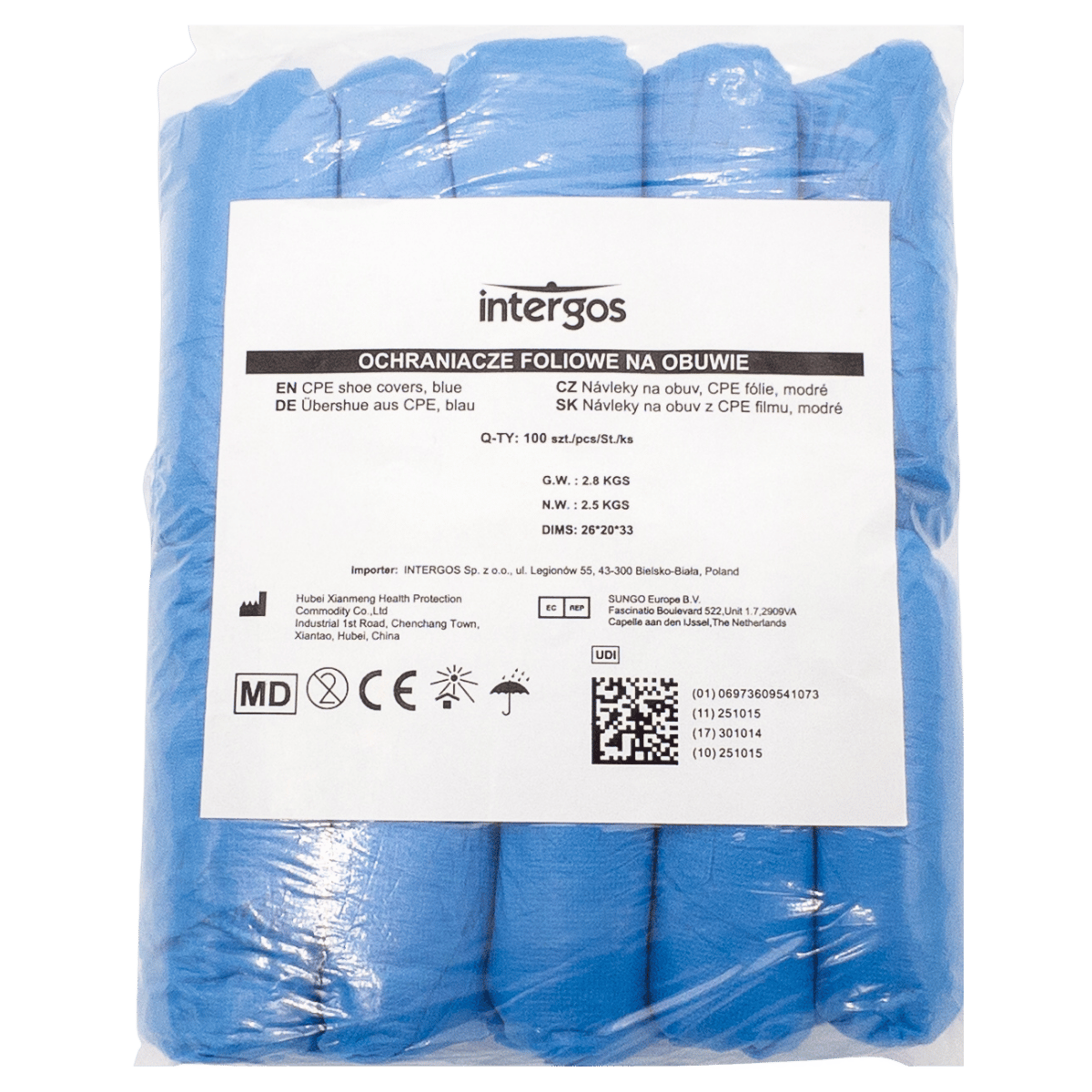 Ochraniacze na obuwie Intergos to niejałowe, jednorazowe pokrowce foliowe wykonane z polietylenu (PE). Zostały zaprojektowane z myślą o utrzymaniu czystości w strefach, w których ważne jest ograniczanie przenoszenia zanieczyszczeń wnoszonych na obuwiu.