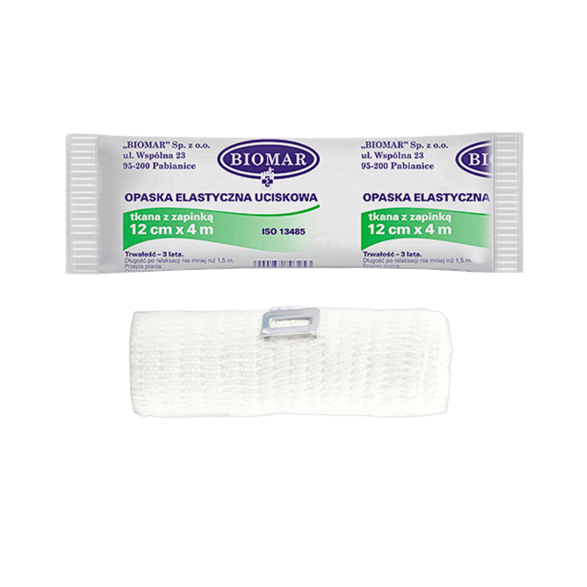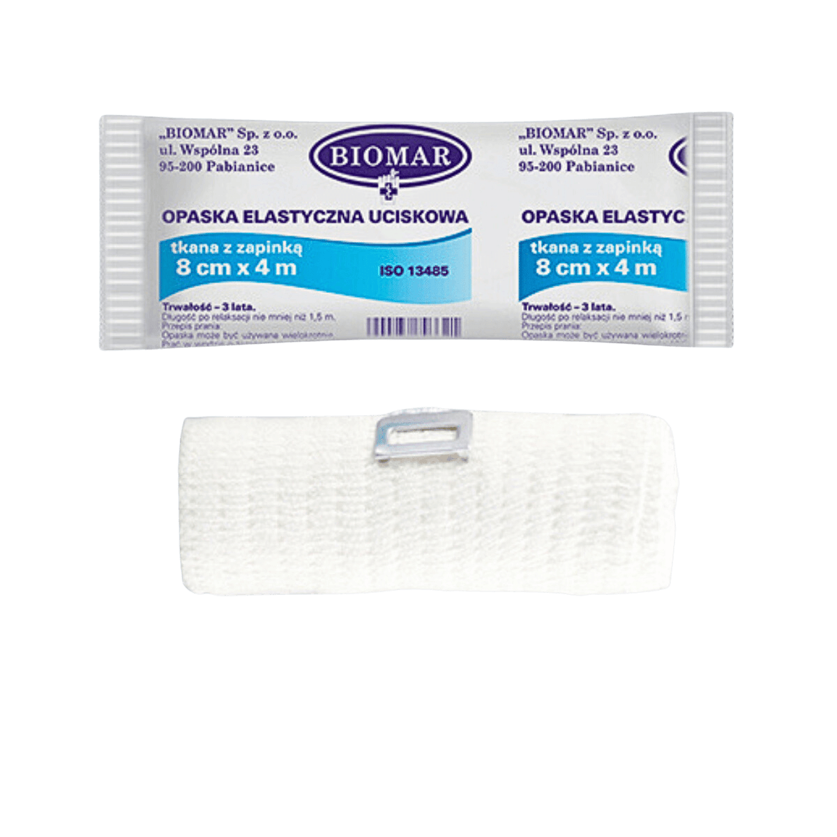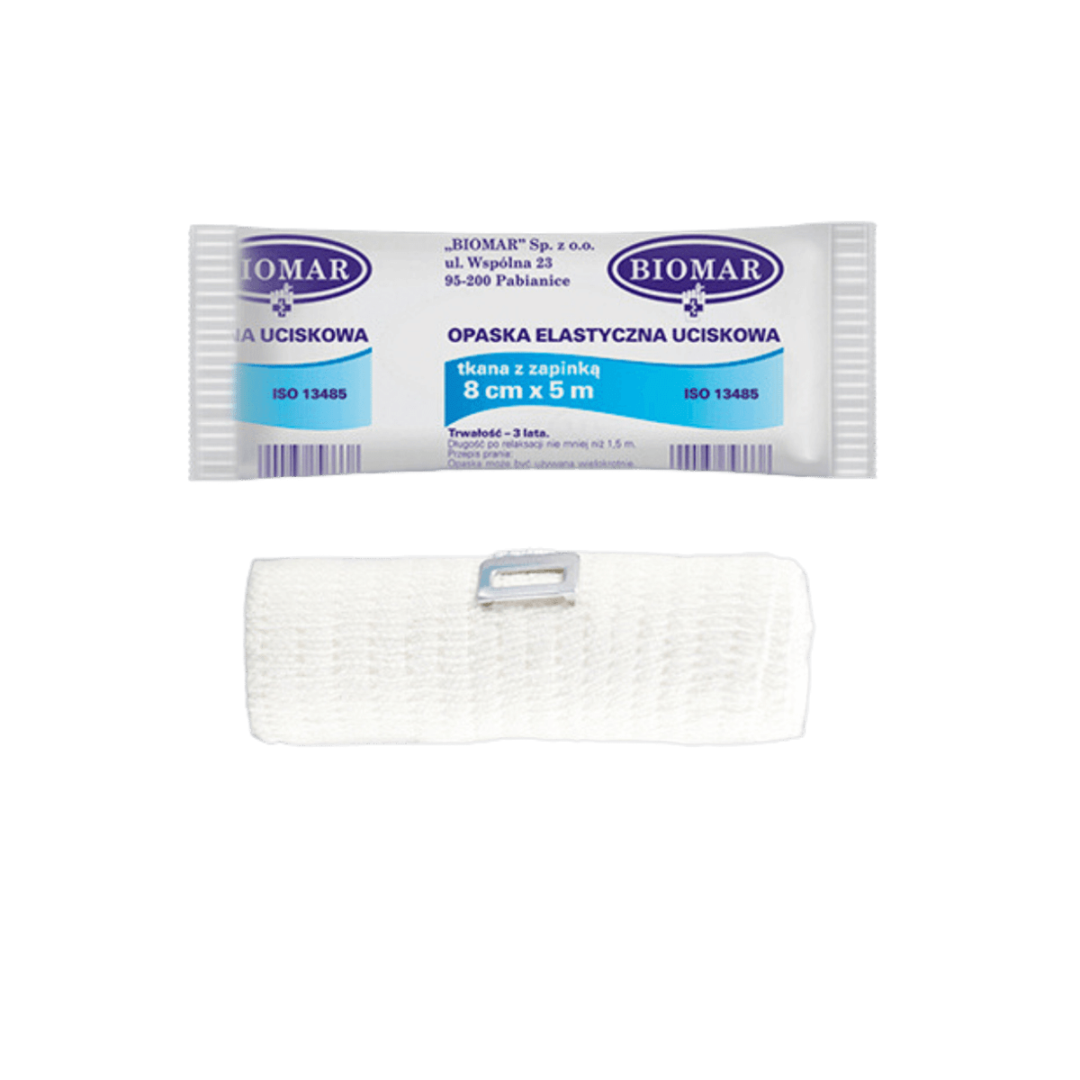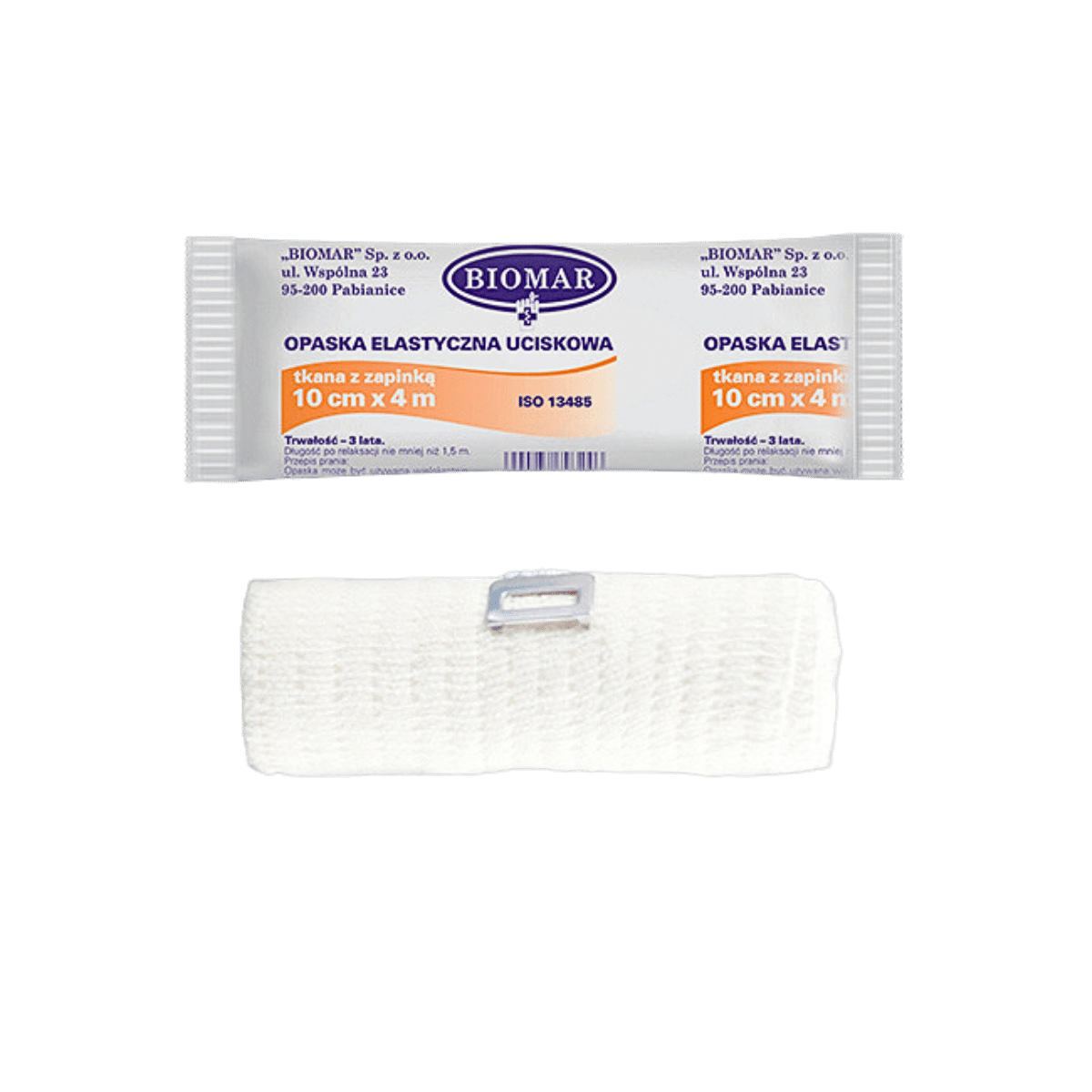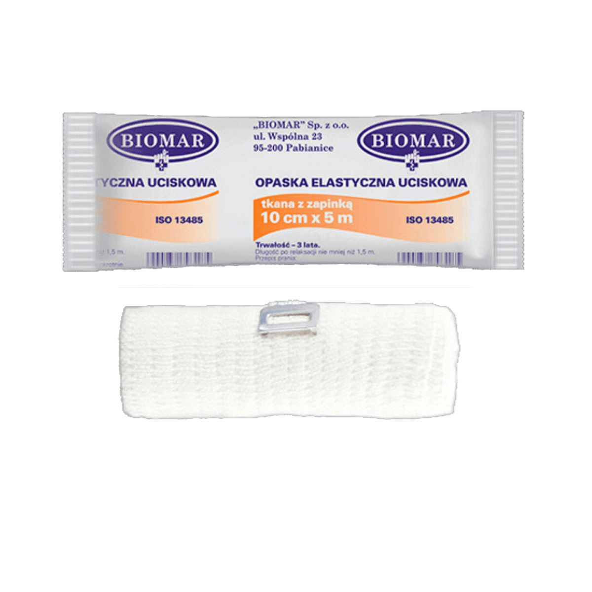 Opaska elastyczna Biomar jest klasycznym, tkanym bandażem z zapinką. Charakteryzuje się niezwykłą elastycznością – aż do 100%! Opaskę wykonano z delikatnych włókien, które zapewniają komfort użytkowania. Struktura włókien zapobiega zsuwaniu się bandaża, a jego elastyczność zachowuje się przez długi czas, co sprawia, że nie rozluźnia się i nie zwalnia ucisku.