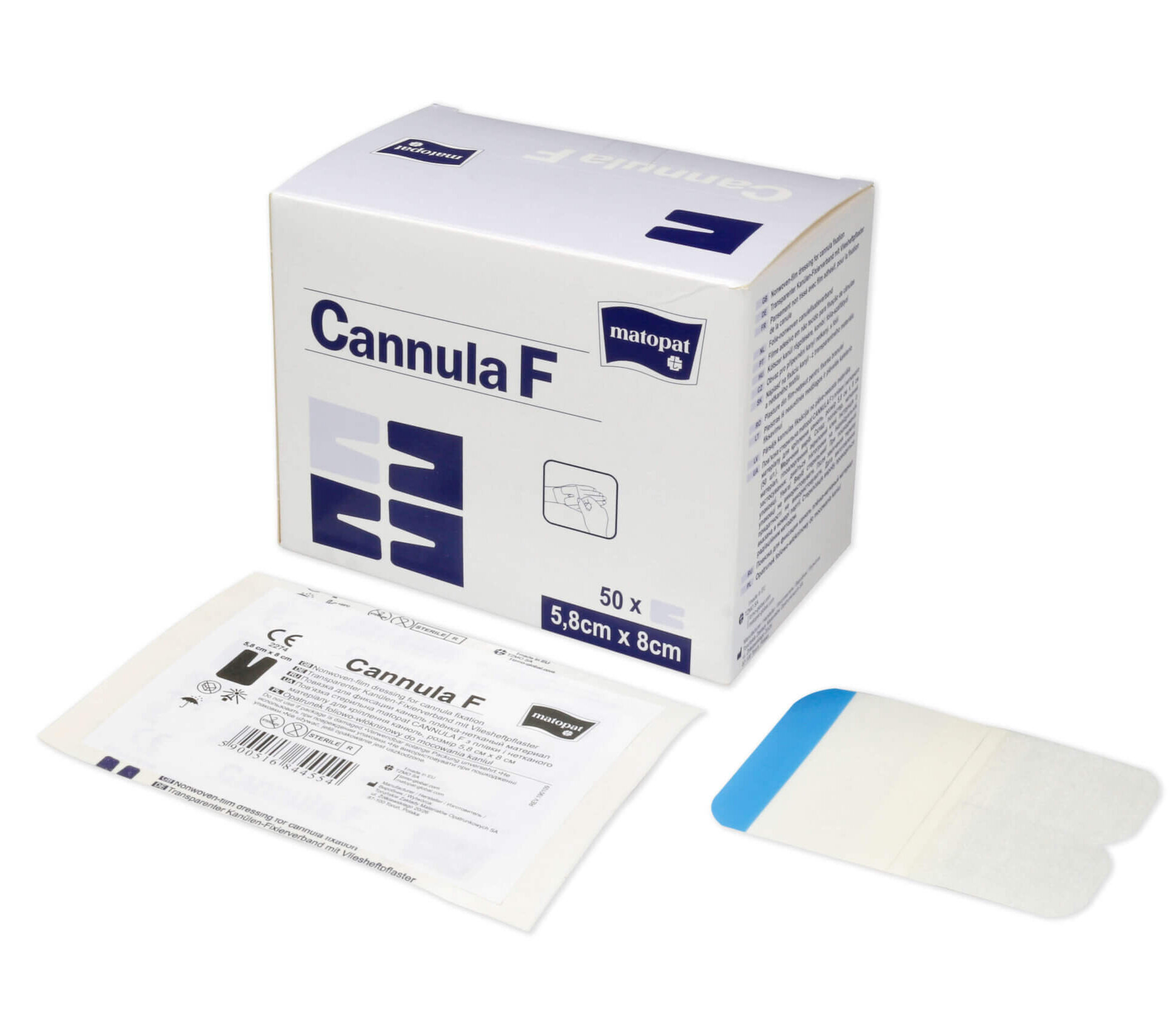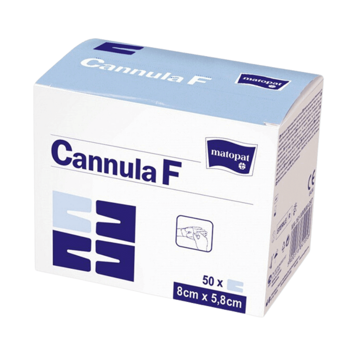 Opatrunek foliowo-włókninowy Cannula F o wymiarach 8 cm x 5,8 cm to samoprzylepny opatrunek przeznaczony do mocowania i ochrony kaniul. W opakowaniu znajduje się 50 sztuk jednorazowych opatrunków.