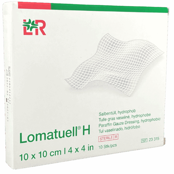 Opatrunek gazowy nasączony białą wazeliną Lomatuell H Lohmann & Rauscher to gotowa do użycia siatka tiulowa pokryta z obu stron papierem pergaminowym. Umożliwia delikatne opatrywanie ran powierzchownych.