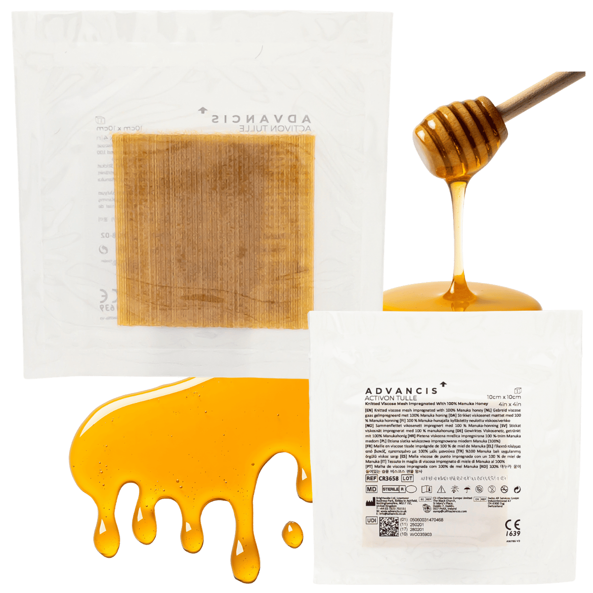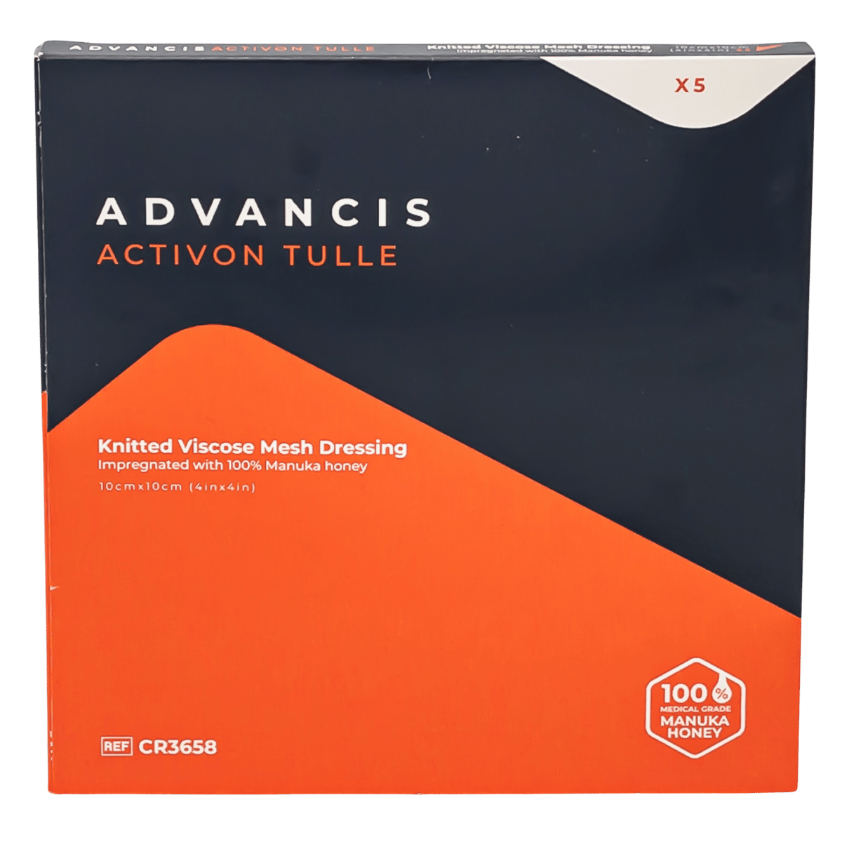 Activon Tulle 10×10 cm to jałowy opatrunek tiulowy (siatkowy) nasączony czystym miodem Manuka o silnych właściwościach antybakteryjnych i regenerujących.