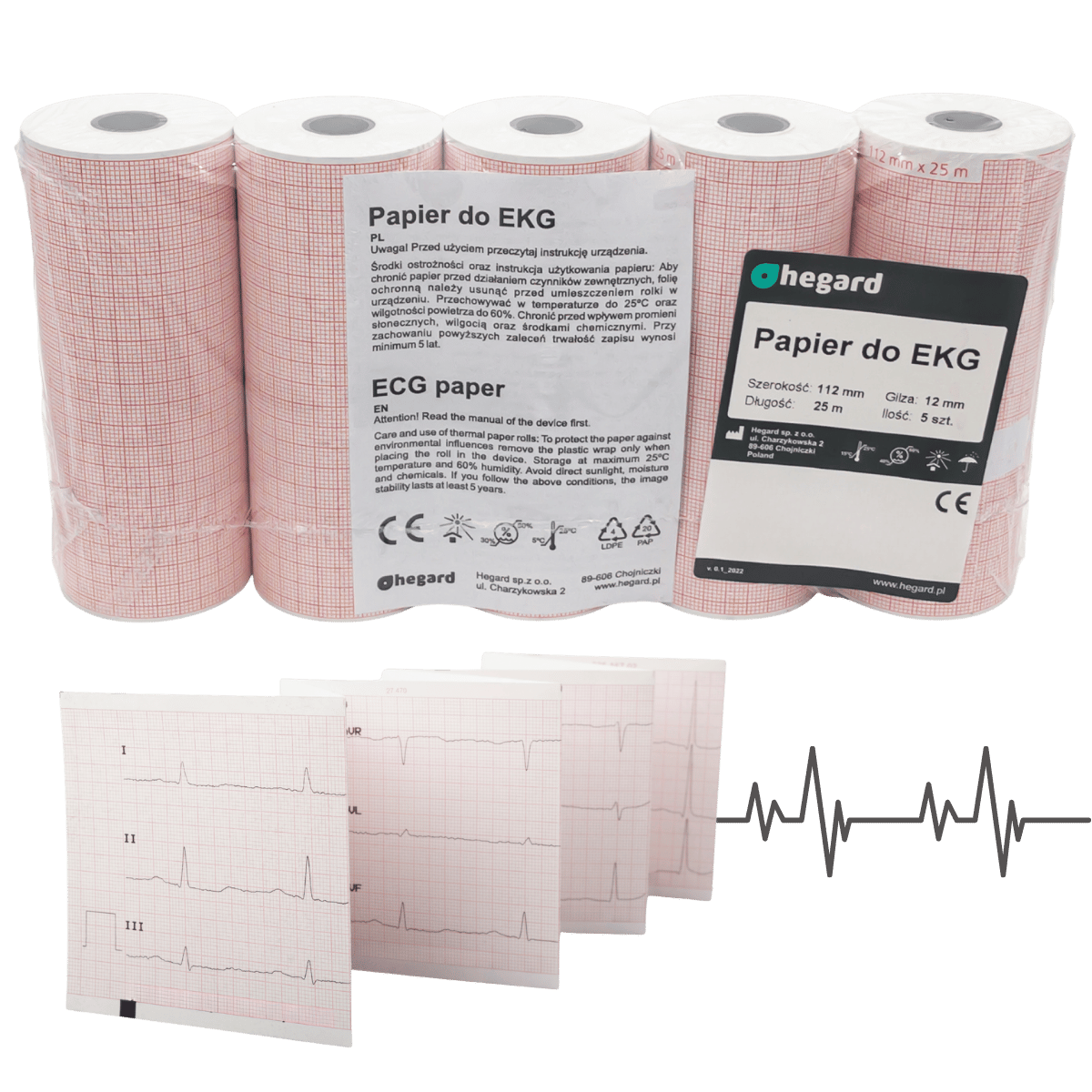 Papier do EKG 112 mm x 25 m to wysokiej jakości wyrób medyczny przeznaczony do rejestracji zapisu elektrokardiograficznego (EKG). Zaprojektowany z myślą o precyzyjnym odwzorowaniu sygnałów elektrycznych serca, gwarantuje czytelność, trwałość i niezawodność każdego zapisu.