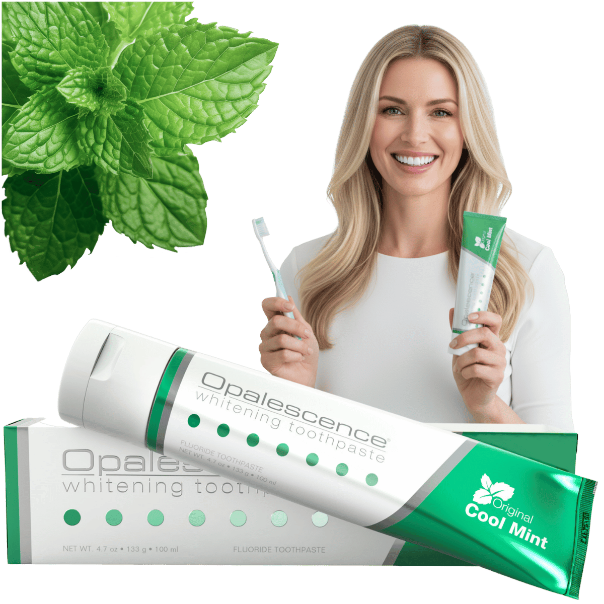 - Formuła wybielająca Opalescence – pomaga usuwać powierzchniowe przebarwienia zębów