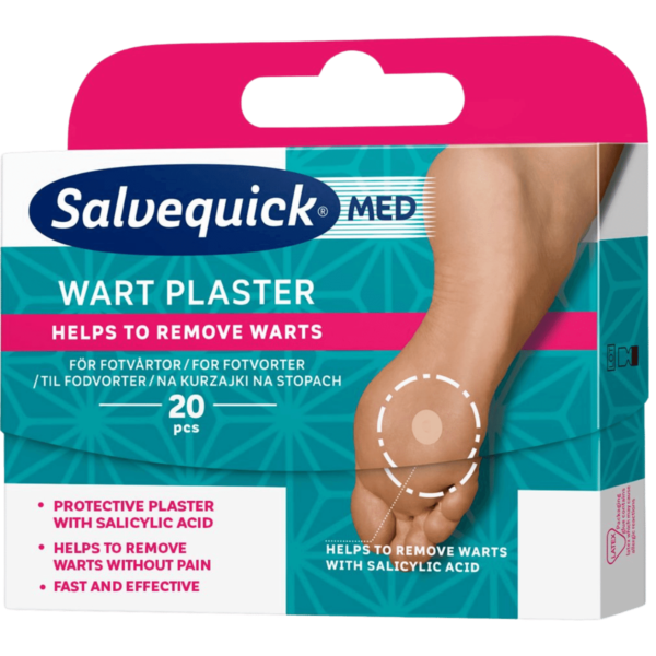 Plastry z kwasem salicylowym na kurzajki na stopach 20szt. Salvequick to skuteczne rozwiązanie dla osób borykających się z kurzajkami na podeszwach stóp. Zawarty w plasterku kwas salicylowy celuje w komórki skóry tworzące kurzajkę, nie uszkadzając zdrowej tkanki wokół. Stosowanie plastrów jest bezbolesne i zapobiega rozprzestrzenianiu się infekcji.