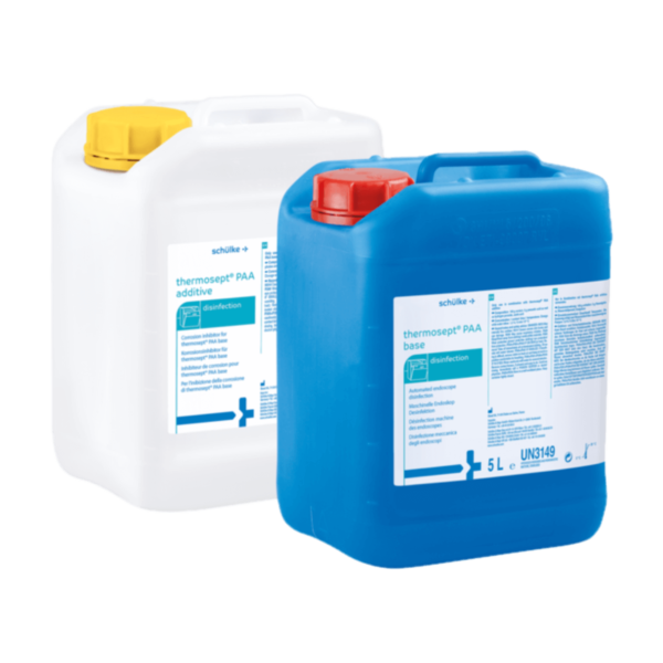 thermosept PAA base oraz thermosept® PAA additive to dwuskładnikowy preparat dezynfekcyjny oparty na kwasie nadoctowym, przeznaczony do chemotermicznego, maszynowego reprocesowania giętkich endoskopów. Zapewnia szybką i skuteczną dezynfekcję przy zachowaniu niskiej temperatury działania oraz wysokiej kompatybilności materiałowej – również z delikatnymi komponentami sprzętu medycznego.