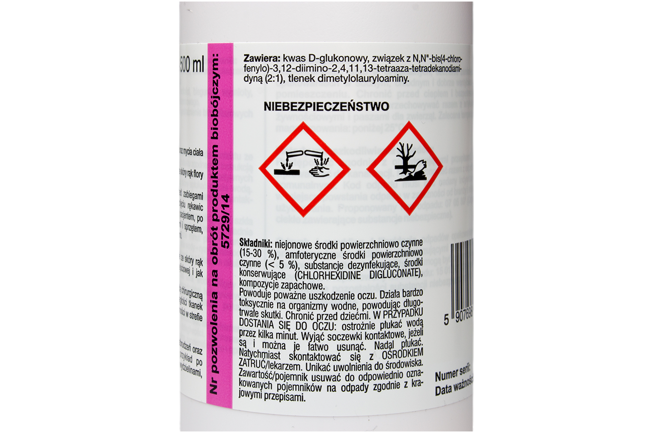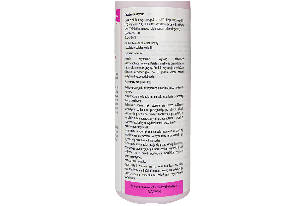Płyn do dezynfekcji z przeznaczeniem do higienicznego oraz chirurgicznego mycia rąk, ciała i włosów.