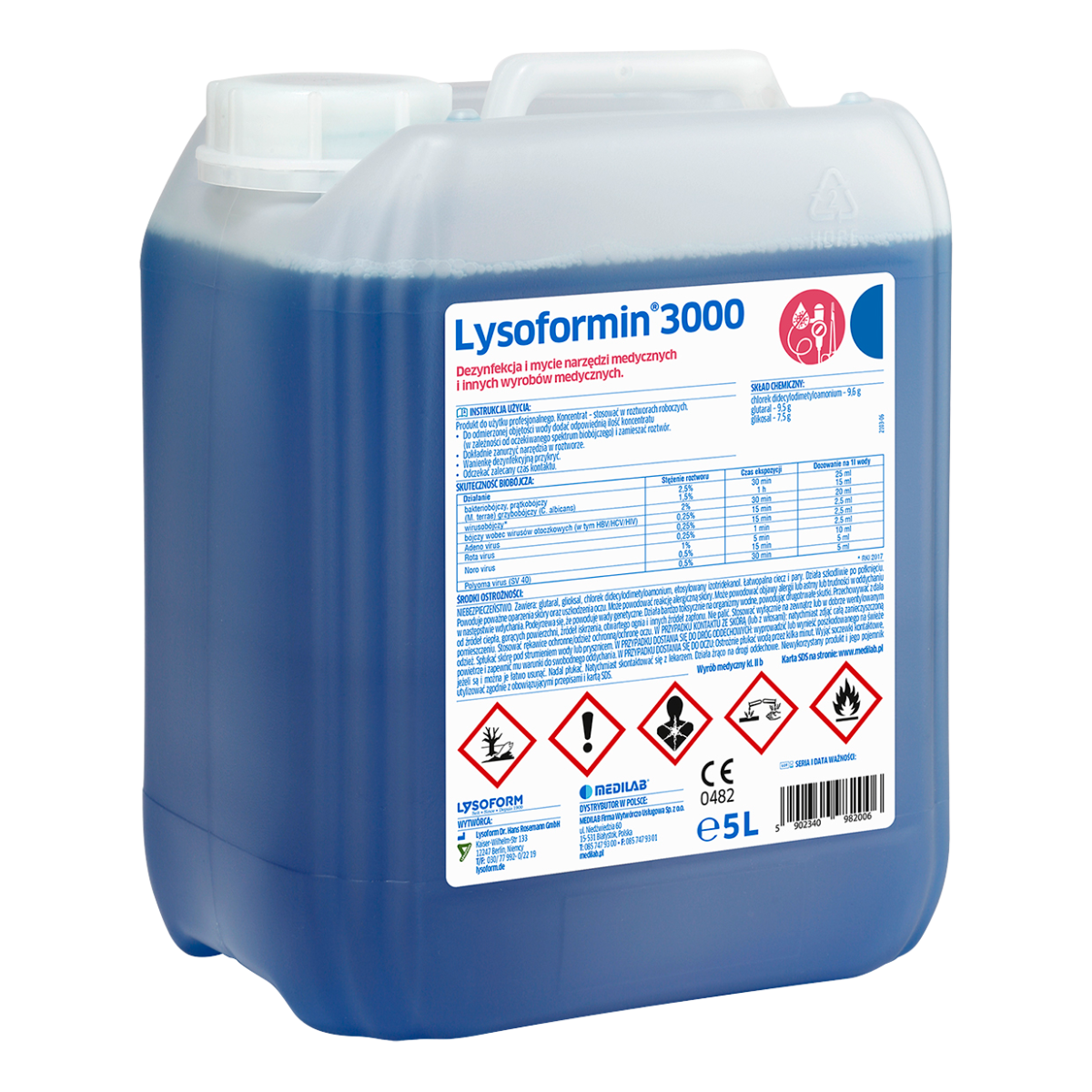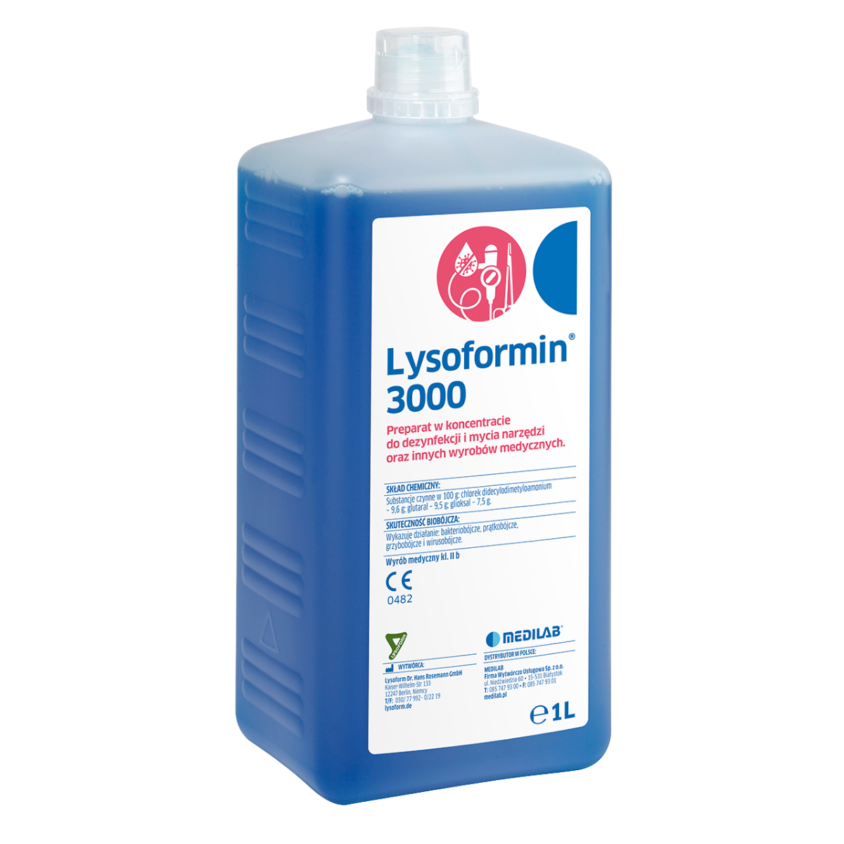 Lysoformin 3000 Medilab to zaawansowany preparat dezynfekująco-myjący przeznaczony do profesjonalnego użytku w placówkach medycznych. Działa już w stężeniu 1,5%, wykazując pełne spektrum wirusobójcze oraz wysoką skuteczność wobec bakterii, grzybów i prątków. Może być stosowany zarówno do dezynfekcji narzędzi i endoskopów, jak i do mycia powierzchni medycznych.