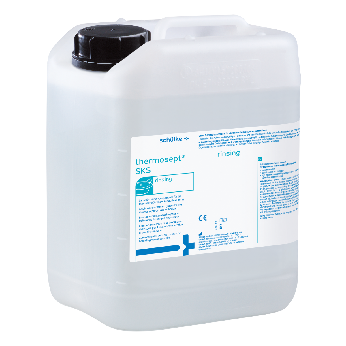 Thermosept SKS to profesjonalny, kwaśny preparat zmiękczająco-płuczący w formie koncentratu, który doskonale sprawdza się w procesie termicznej obróbki naczyń medycznych takich jak konewki („kaczki”) i miski operacyjne.