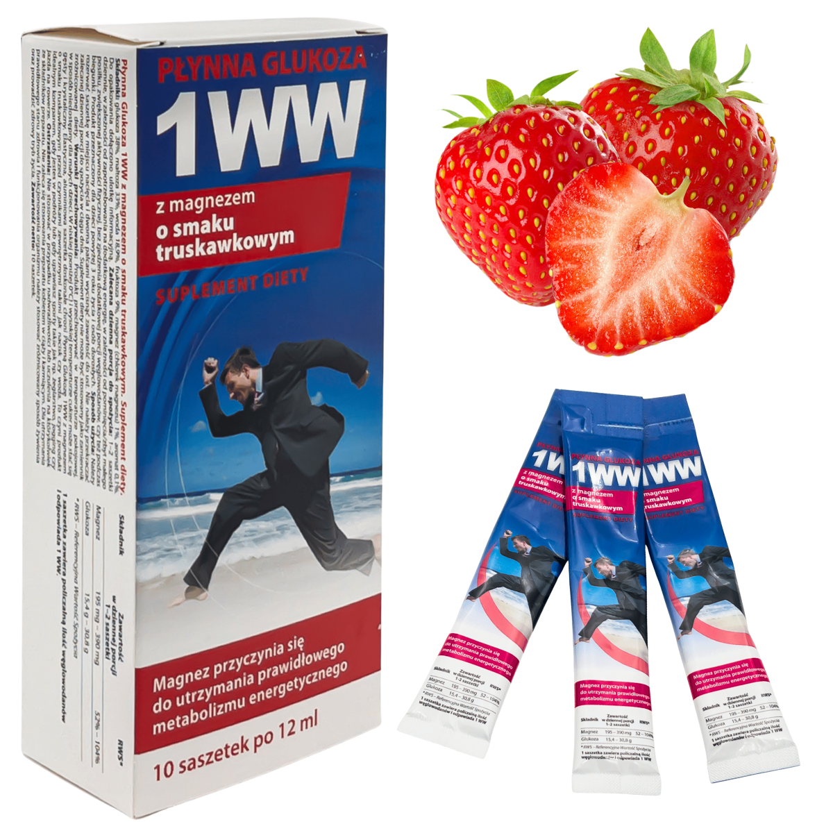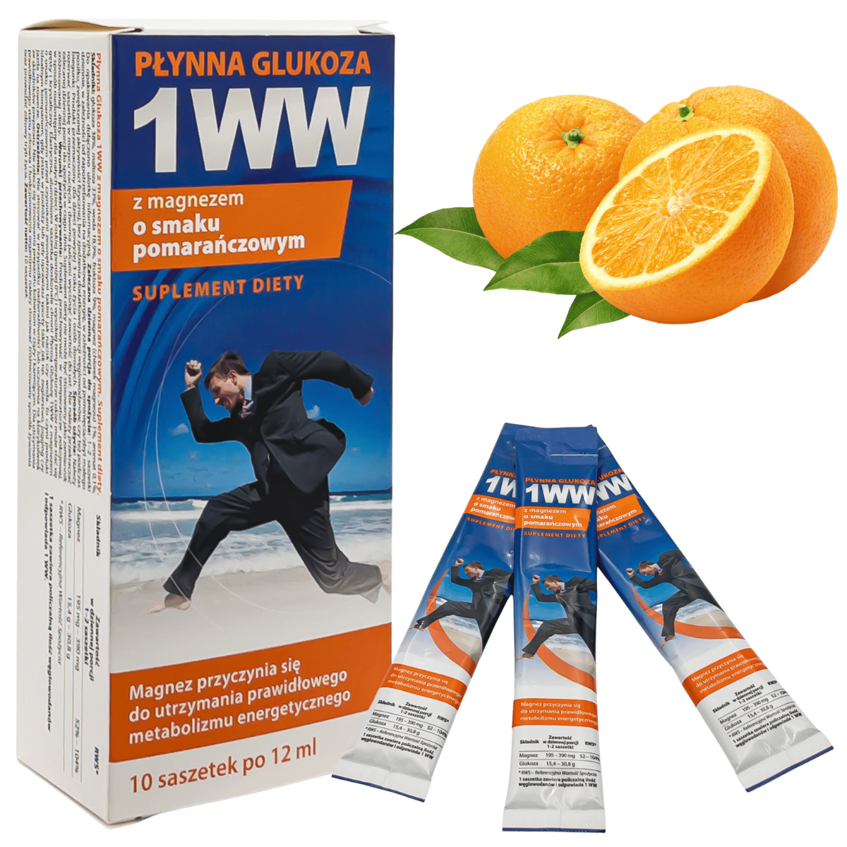 1WW Płynna glukoza w saszetkach – smak truskawkowy lub pomarańczowy | Medmess