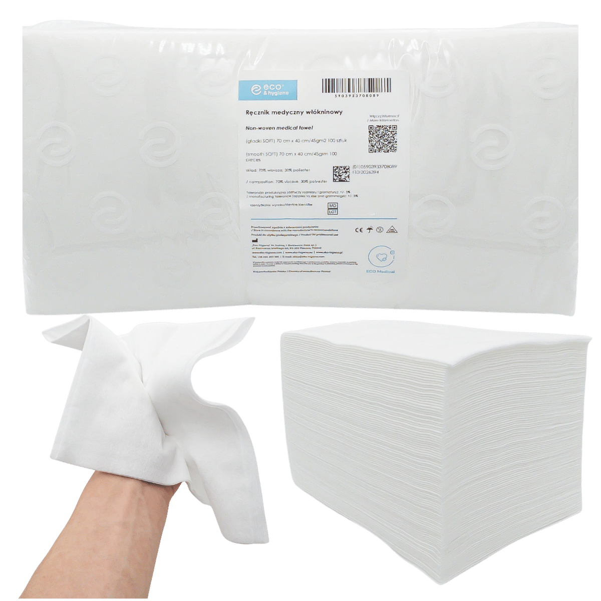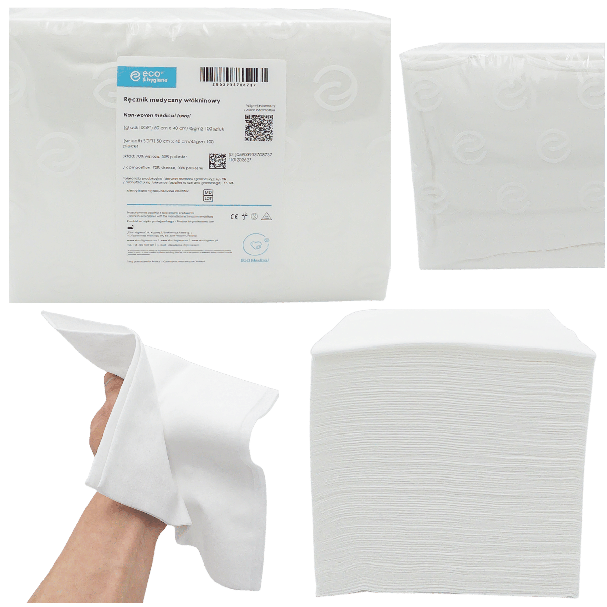 Ręcznik medyczny włókninowy gładki SOFT 45g/m2 100szt EkoHigiena