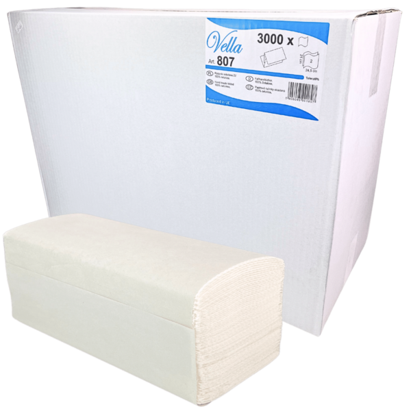 Ręcznik papierowy składany ZZ białe Vella 20szt. (3000 listków)