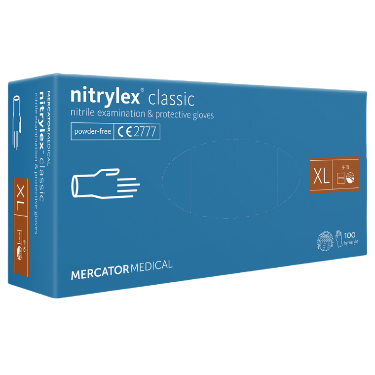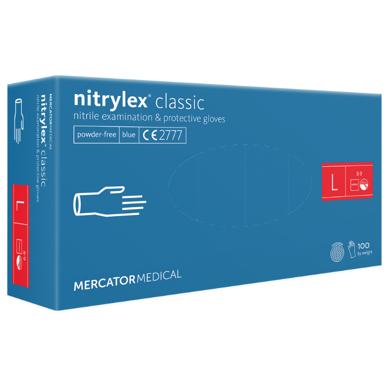 Prezentowane rękawiczki nitrylowe Nitrylex Classic textured marki Mercator Medical to wyrób medyczny, odznaczający się wysoką jakością wykonania. Wykorzystywany do zmian opatrunków, opieki pielęgniarskiej, w laboratoriach, pracowniach cytostatycznych, podczas kontaktu z wybranymi substancjami chemicznymi. Bez najmniejszych problemów rękawiczki te odnajdą się w stomatologii, weterynarii oraz w salonach kosmetycznych. Stanowią jednorazowe rozwiązanie, które pomoże nam zminimalizować zagrożenie infekcji. W przemyśle samochodowym doskonale ochronią przed zabrudzeniami. W przemyśle elektronicznym stanowić będą bardzo dobrą barierę ochronną, między ciałem a energią elektryczną.
