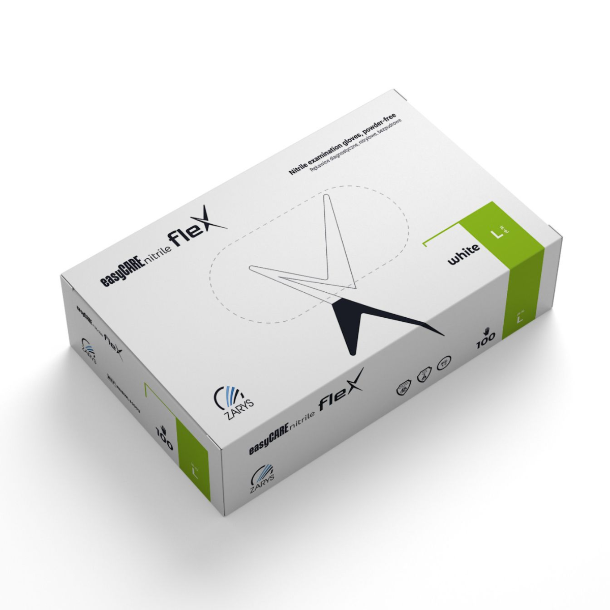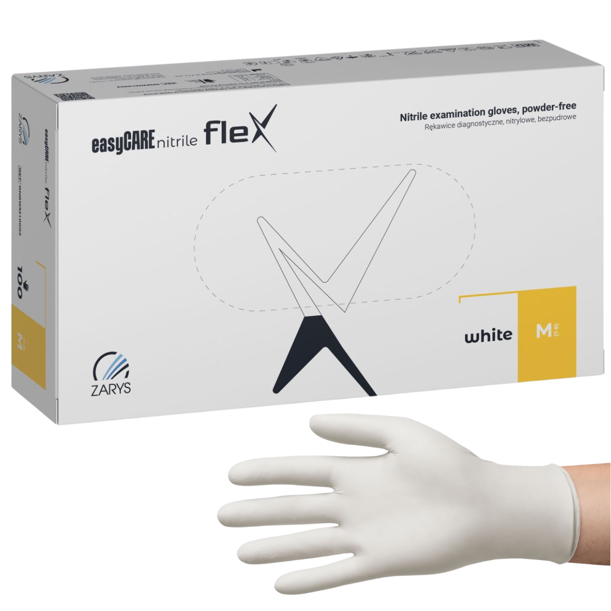 easyCARE nitrile flex – Rękawice diagnostyczne nitrylowe, bezpudrowe, białe