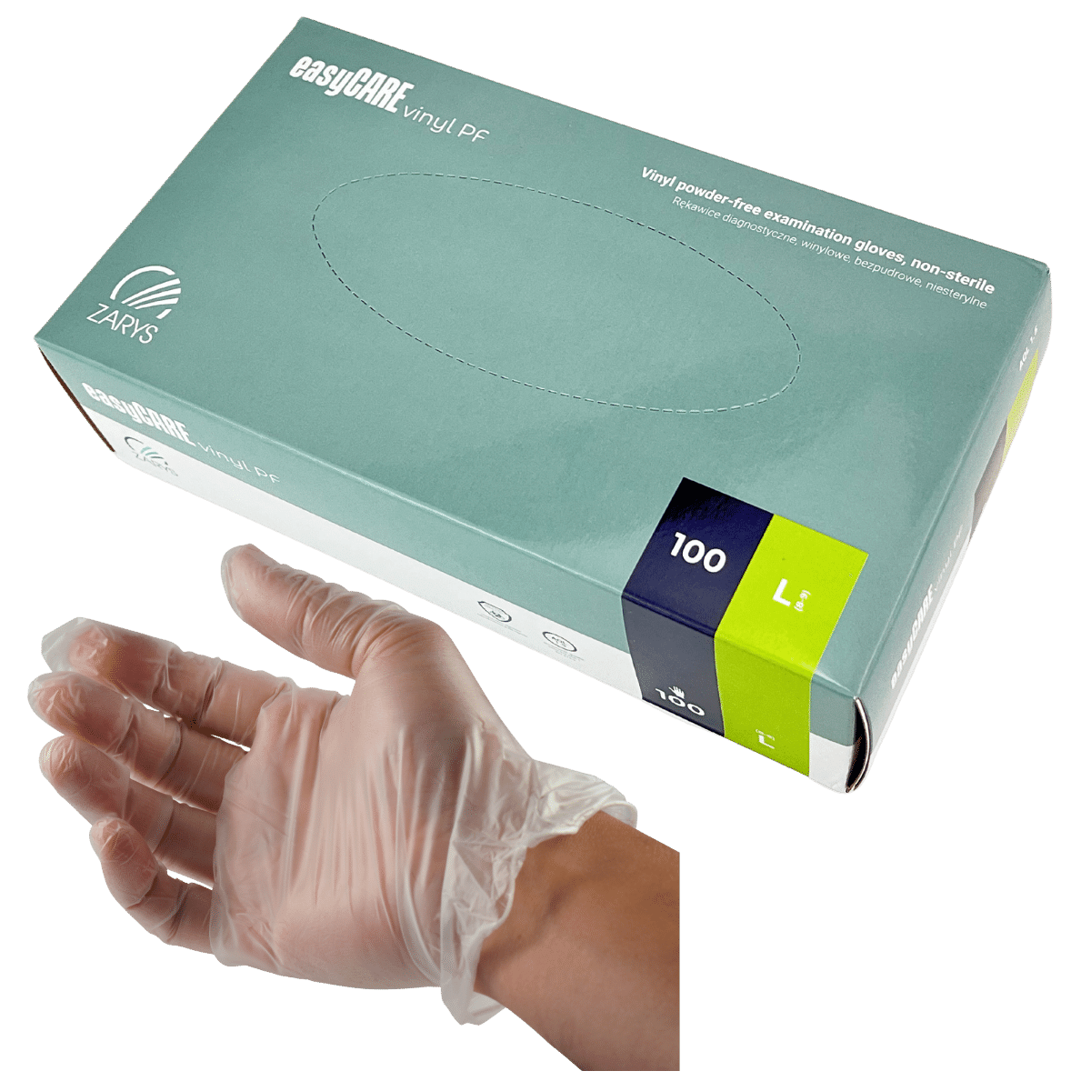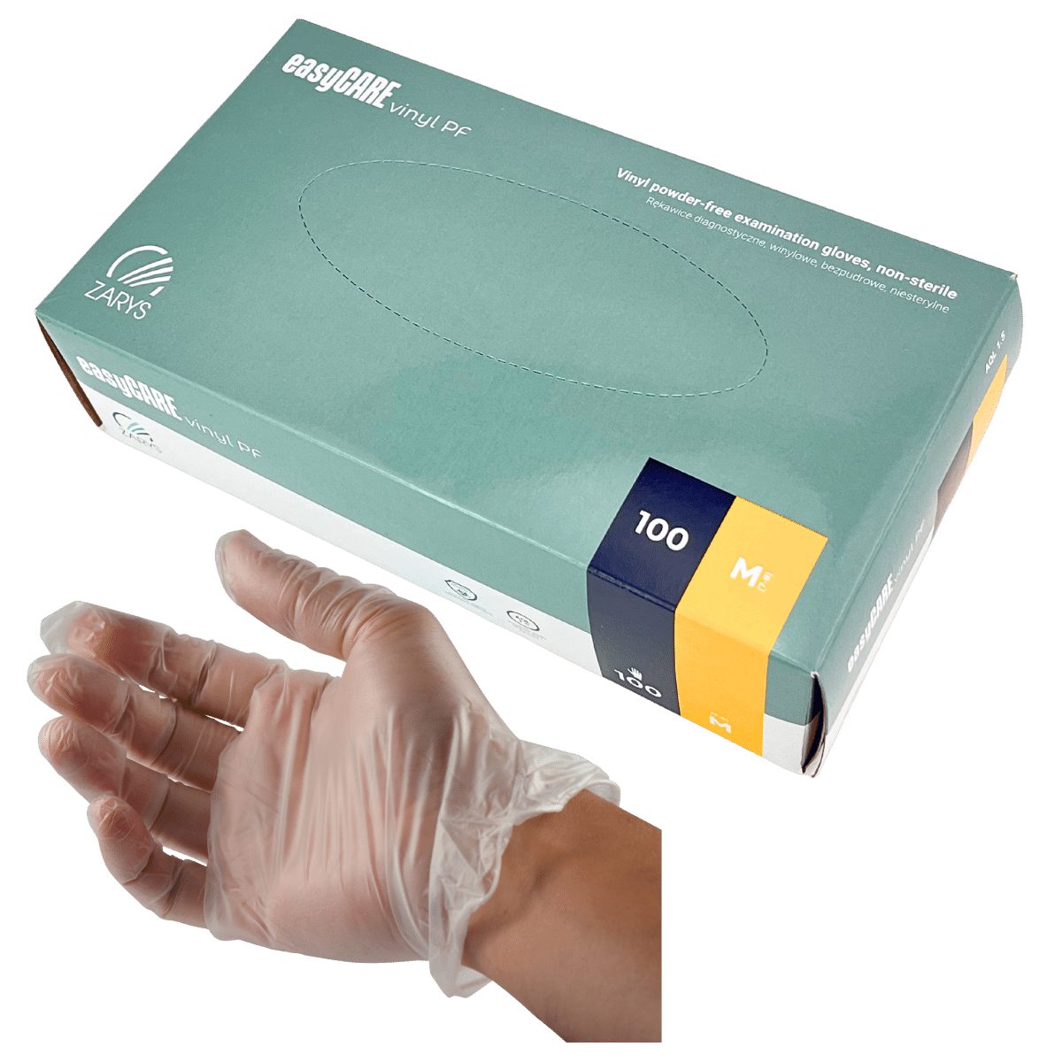Rękawiczki winylowe easyCARE VINYL Zarys to uniwersalne rozwiązanie dla osób ceniących higienę i bezpieczeństwo. Są idealne do użytku w miejscach wymagających utrzymania najwyższego poziomu czystości oraz dla osób z wrażliwą skórą, szukających alternatywy dla rękawiczek lateksowych.