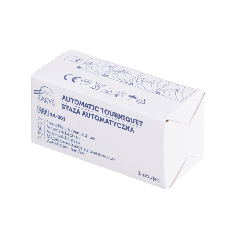 Staza automatyczna jest produktem medycznym niedużych rozmiarów, składającym się z opaski materiałowej odznaczającej się możliwością rozciągania oraz automatycznego klipsa zatrzaskowego. To rozwiązanie wielorazowego użytku, które po zastosowaniu wystarczy umyć oraz poddać zabiegowi dezynfekcji. Należy do tego użyciu preparatów dezynfekujących, przeznaczonych do tego typu materiałów. Staza posiada elastyczną taśmę odporną na zniszczenia z automatyczną samo zaciskającą się klamrą, dzięki czemu bez trudu dopasujemy ją do różnego rozmiaru kończyn, zarówno górnych, jak i dolnych. Automatyczny przycisk pozwala na stopniowe uwalnianie ucisku przez naciśnięcie. Jest to prosty mechanizm umożliwiający łatwe zapinanie i odpinanie oraz płynną zmianę siły zacisku.
