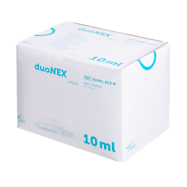 Prezentowana profesjonalna, dwuczęściowa strzykawka duoNEX firmy Zarys to produkt z końcówką luer, który zdecydowanie poprawi komfort pracy nie tylko pielęgniarek, ale również pozostałej kadry medycznej. Każda ze strzykawek jest jednorazowym, nietoksycznym oraz niepirogennym rozwiązaniem, które zostało zapakowane pojedynczo, zapewniając tym samym każdej sztuce gwarancję wysokiej jakości. Strzykawka przeznaczona jest do podawania leków lub płynów pacjentom, jak również pobierania płynów ustrojowych od pacjentów.