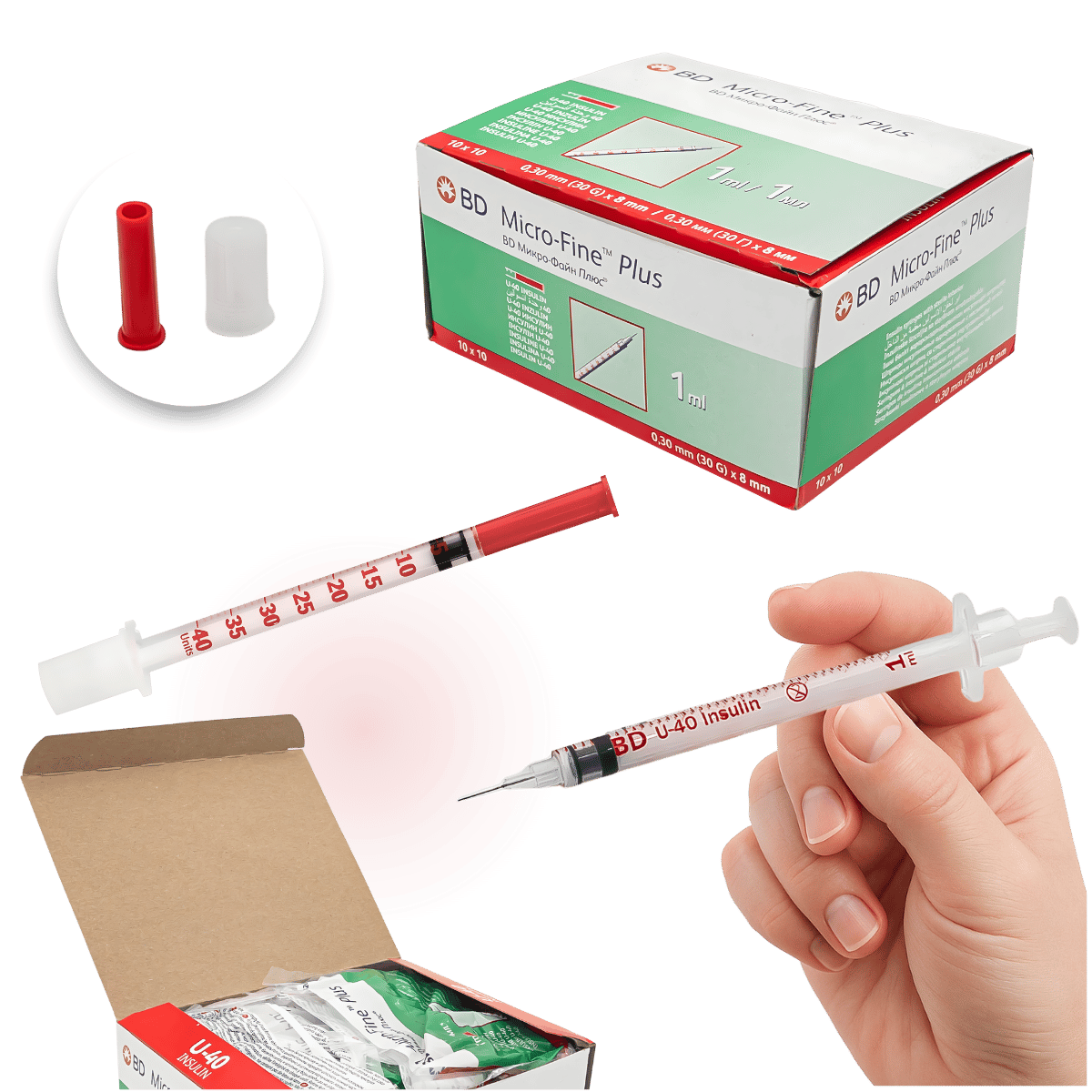 - 100 sztuk sterylnych, indywidualnie pakowanych strzykawek BD Micro-Fine Plus