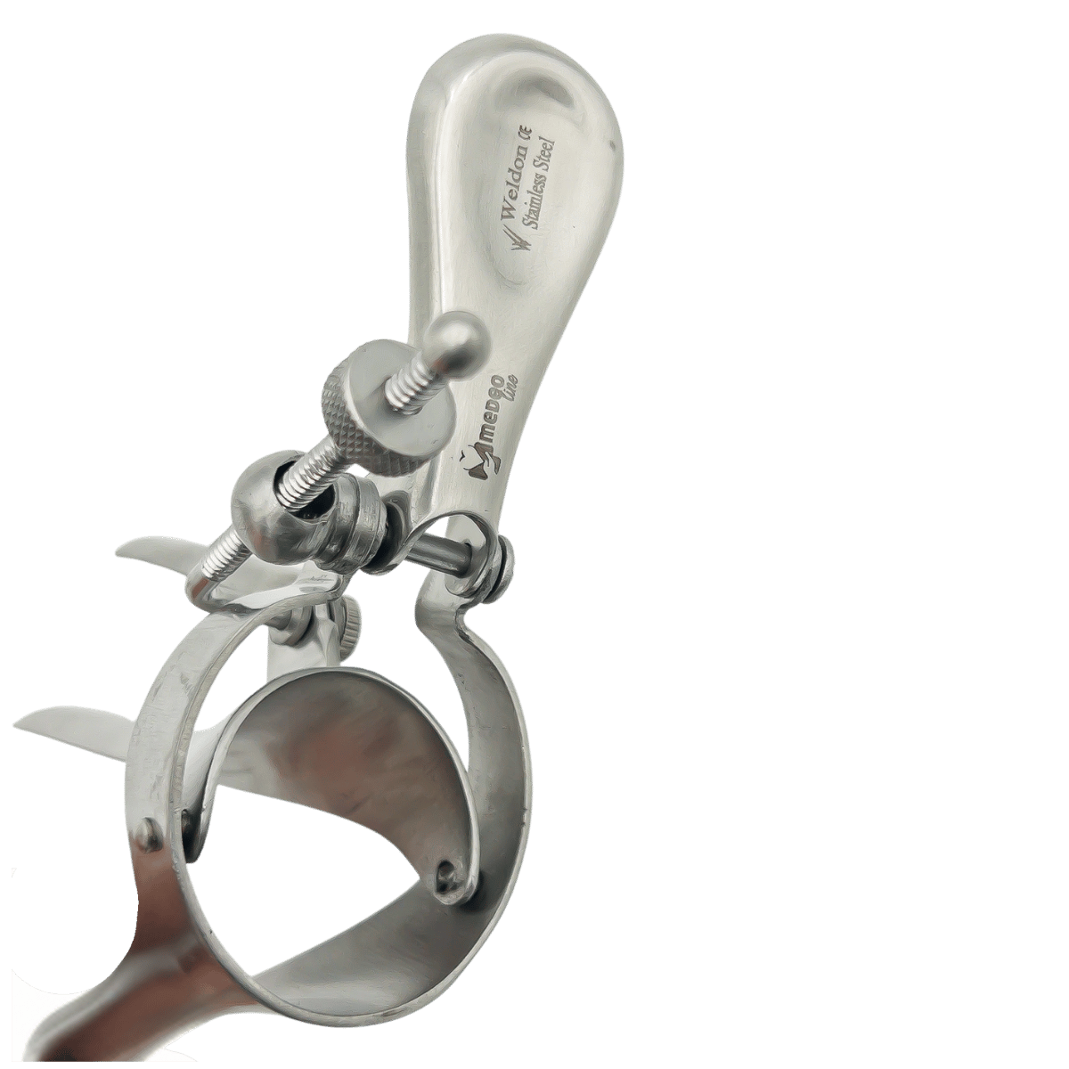 • Mechanizm blokady śrubowej / samozaciskowej – pozwala na stabilne rozwarcie i utrzymanie pola widzenia, ułatwiając pracę lekarza,