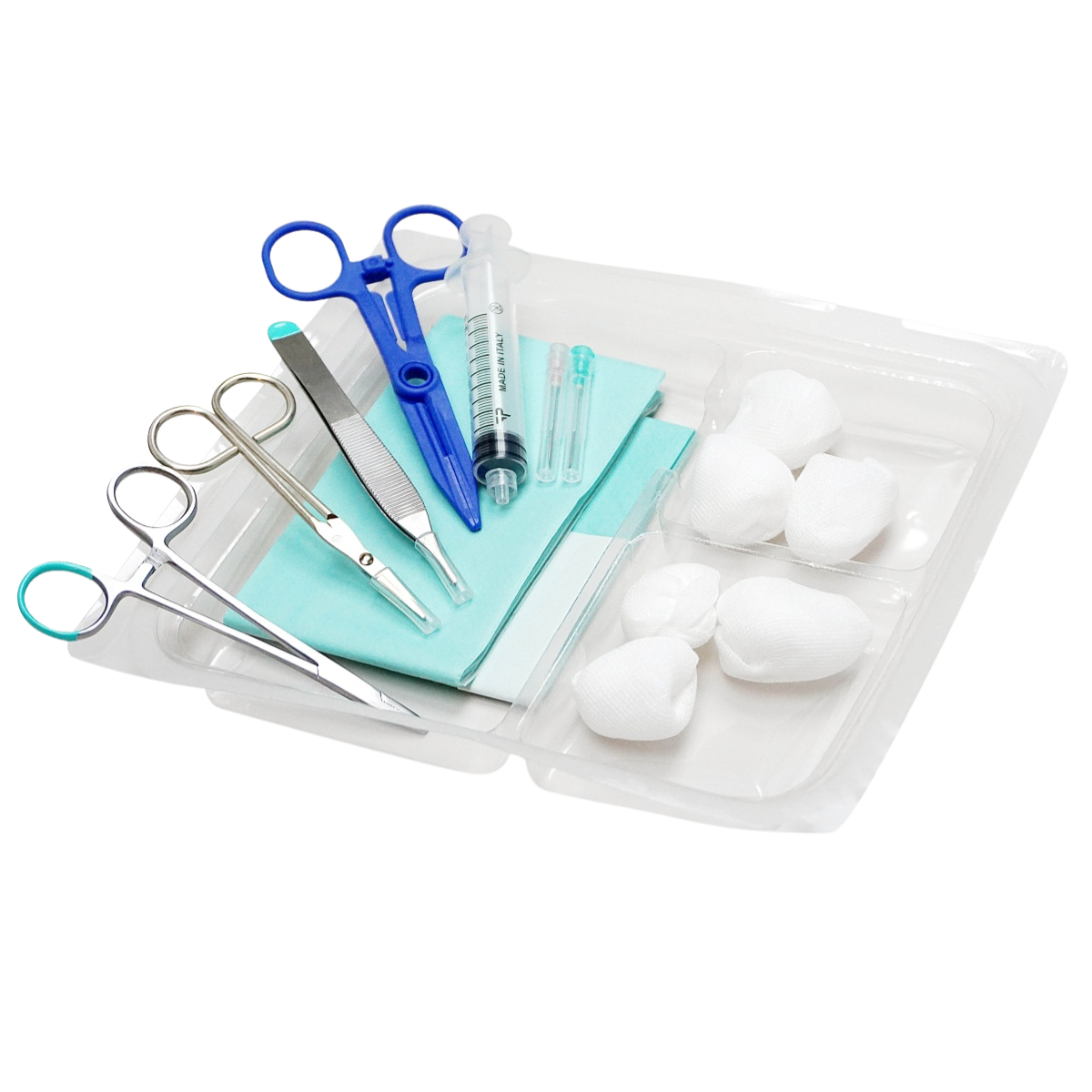 Kompletny, jałowy zestaw narzędzi i akcesoriów do szycia chirurgicznego