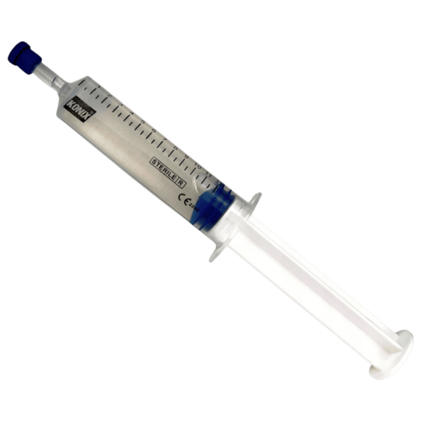 • Sterylna strzykawka posiada lidokainę o stężeniu 2% i chlorhexydynę – dzięki czemu znieczula oraz ma właściwości odkażające.